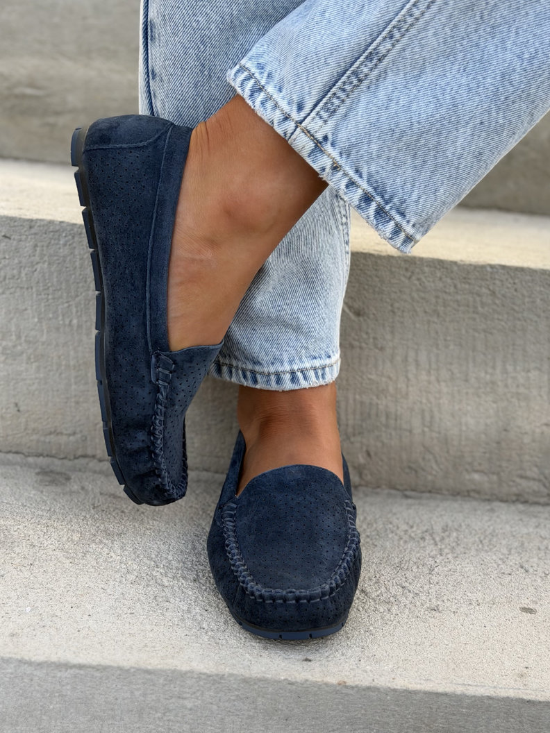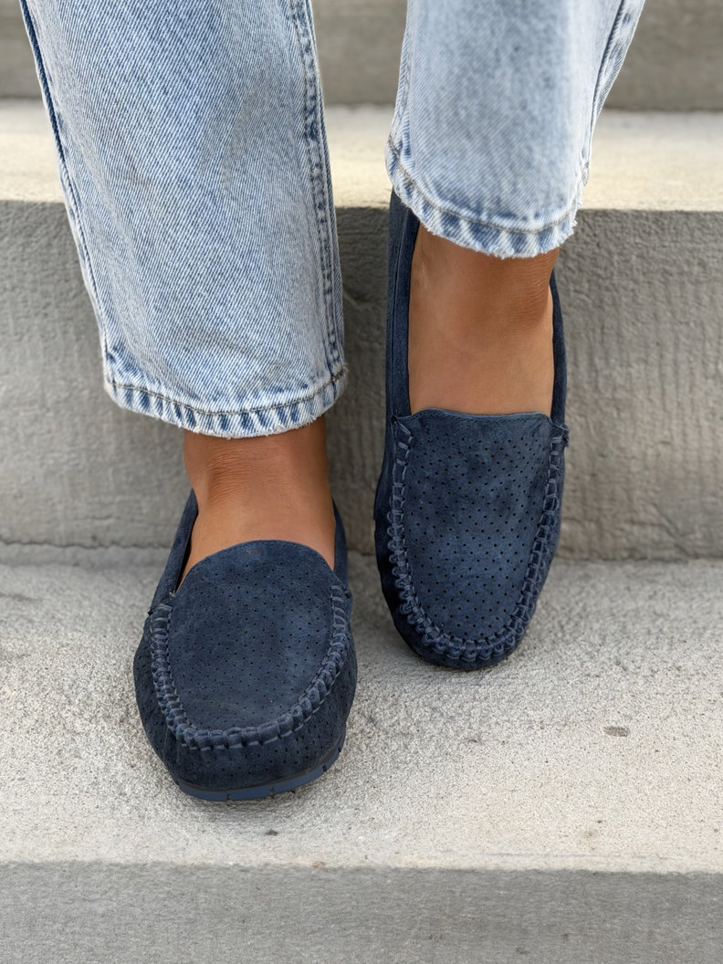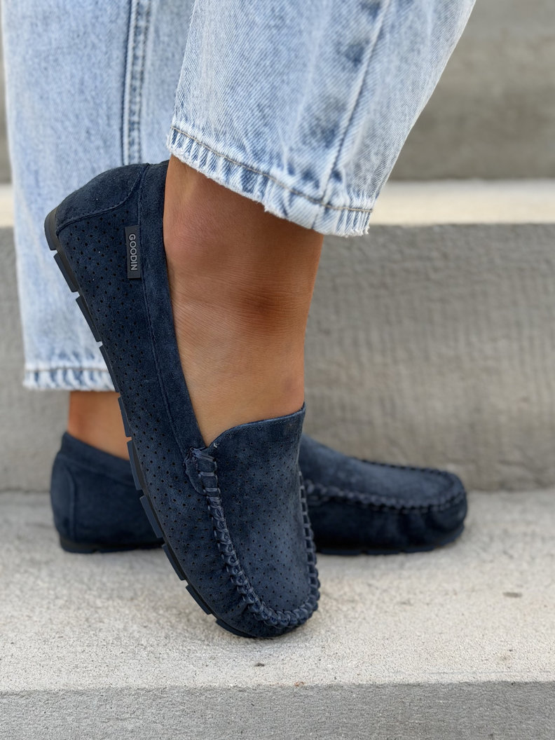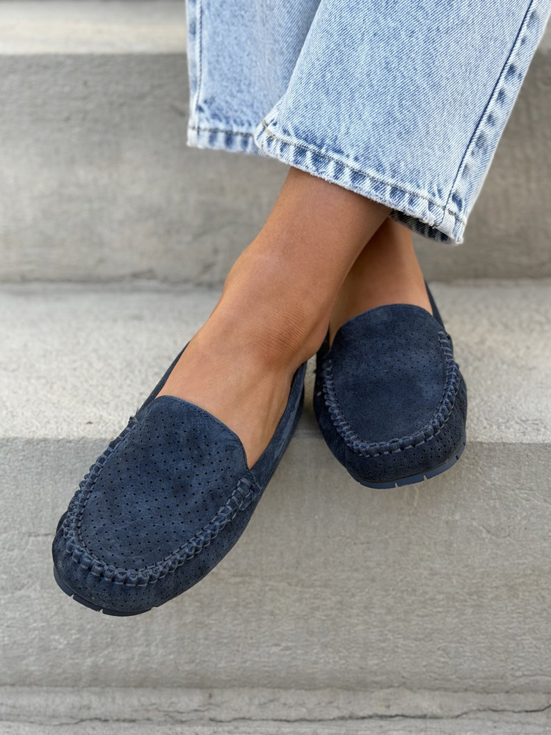 Ażurowe mokasyny MISSIS NAVY BLUE skóra naturalna