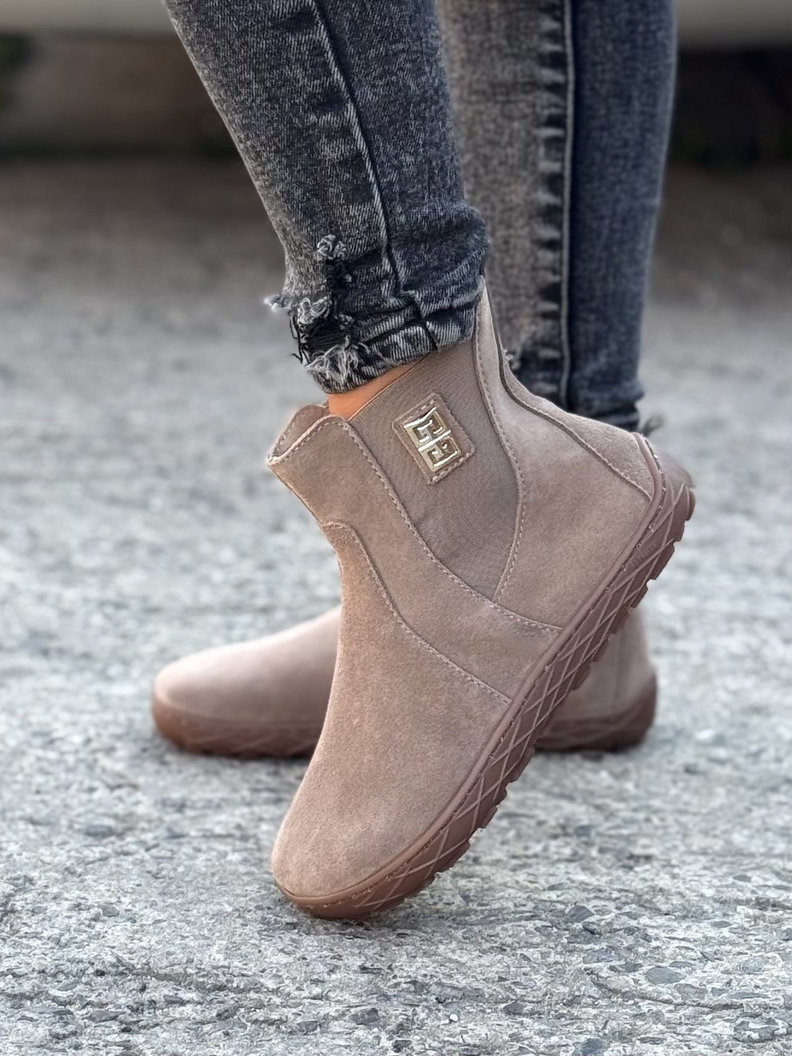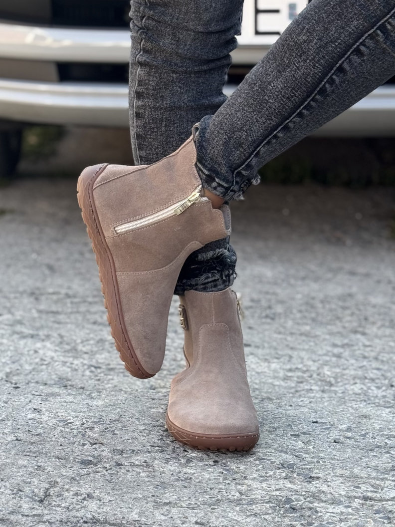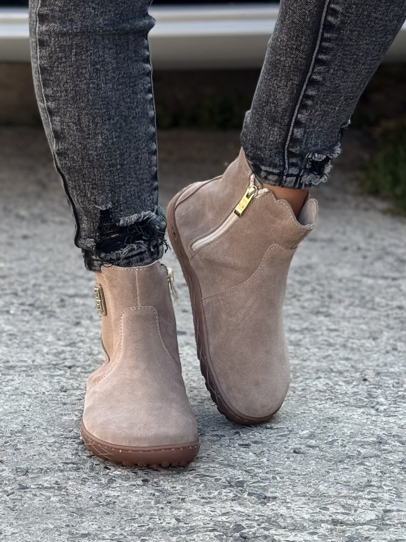 Botki barefoot Kazadii to obuwie, które pozwala stopie pracować w naturalny sposób. Wykonane z naturalnej skóry, z szeroką przestrzenią w palcach i elastyczną podeszwą, gwarantują komfort przez cały dzień. Suwak po wewnętrznej stronie ułatwia szybkie zakładanie, a elastyczna guma po zewnętrznej perfekcyjnie dopasowuje się do stopy. Buty są lekkie, przewiewne i idealne na każdą porę roku. To najbardziej pożądany typ obuwia barefoot, łączący zdrowie stóp, wygodę i nowoczesny design.