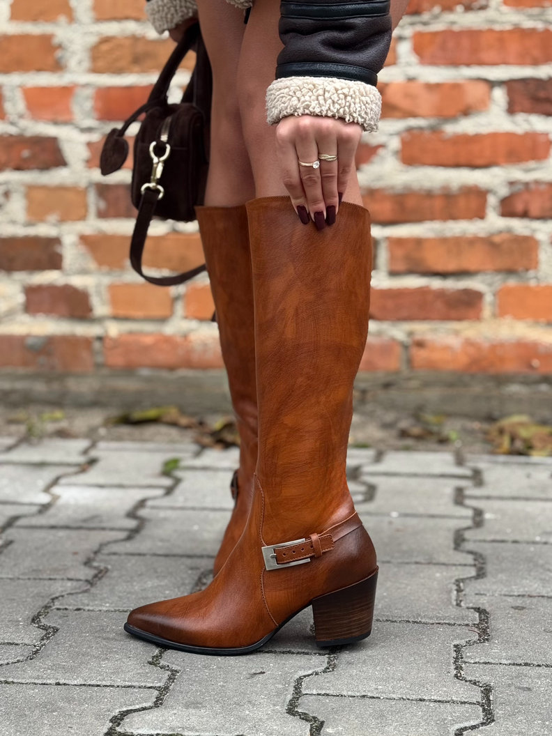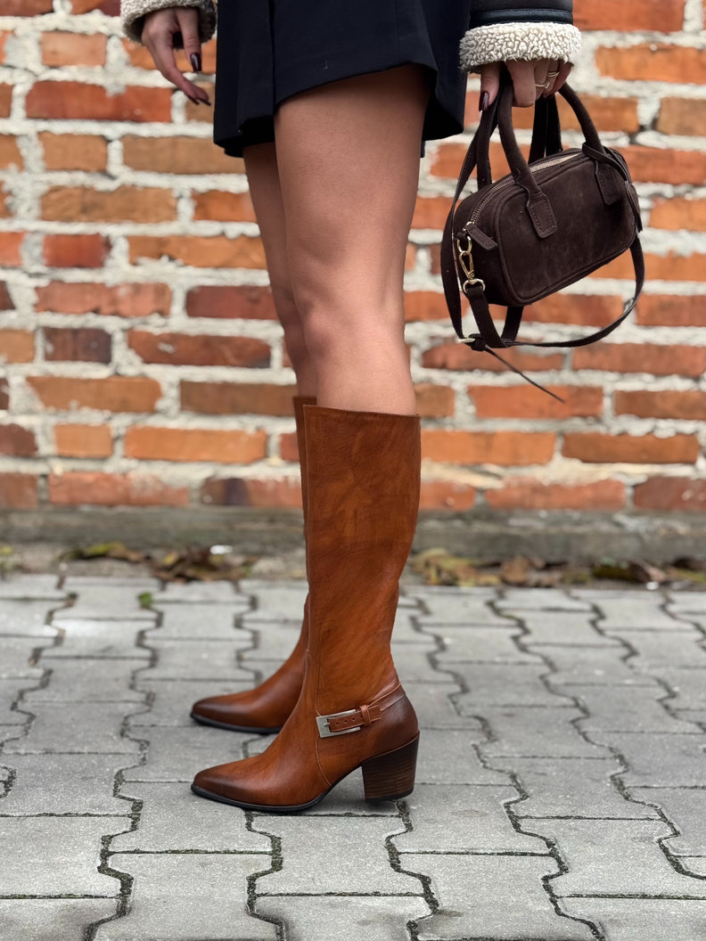 Wyjątkowe kozaki z wyższą cholewką sięgającą przed kolano – idealnie wysmuklają nogę i dodają sylwetce lekkości.