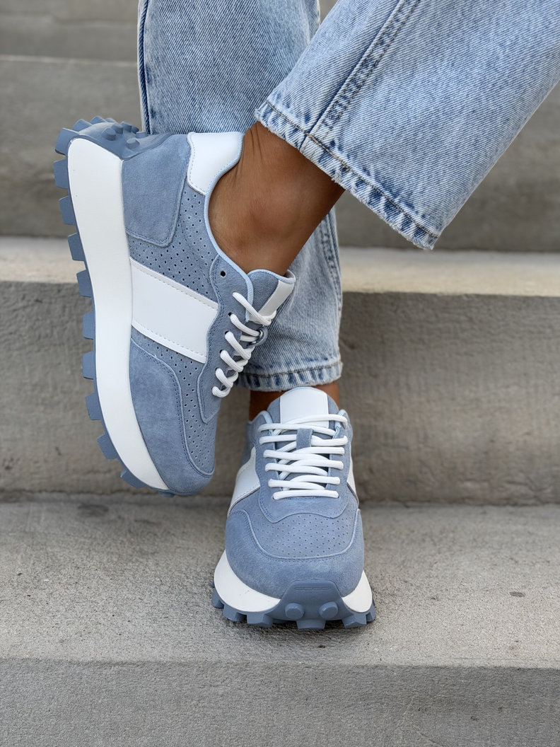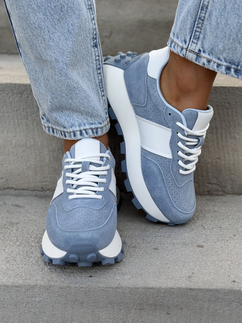 Ultralekkie sneakersy damskie z naturalnej skóry i przewiewnego materiału. Skórzane wnętrze i wkładka zapewniają maksymalny komfort przez cały dzień. Podeszwa 4 cm subtelnie wysmukla sylwetkę i dodaje modnego, nowoczesnego charakteru. To jeden z najbardziej pożądanych modeli tego sezonu – wygodne, premium i absolutnie topowe.