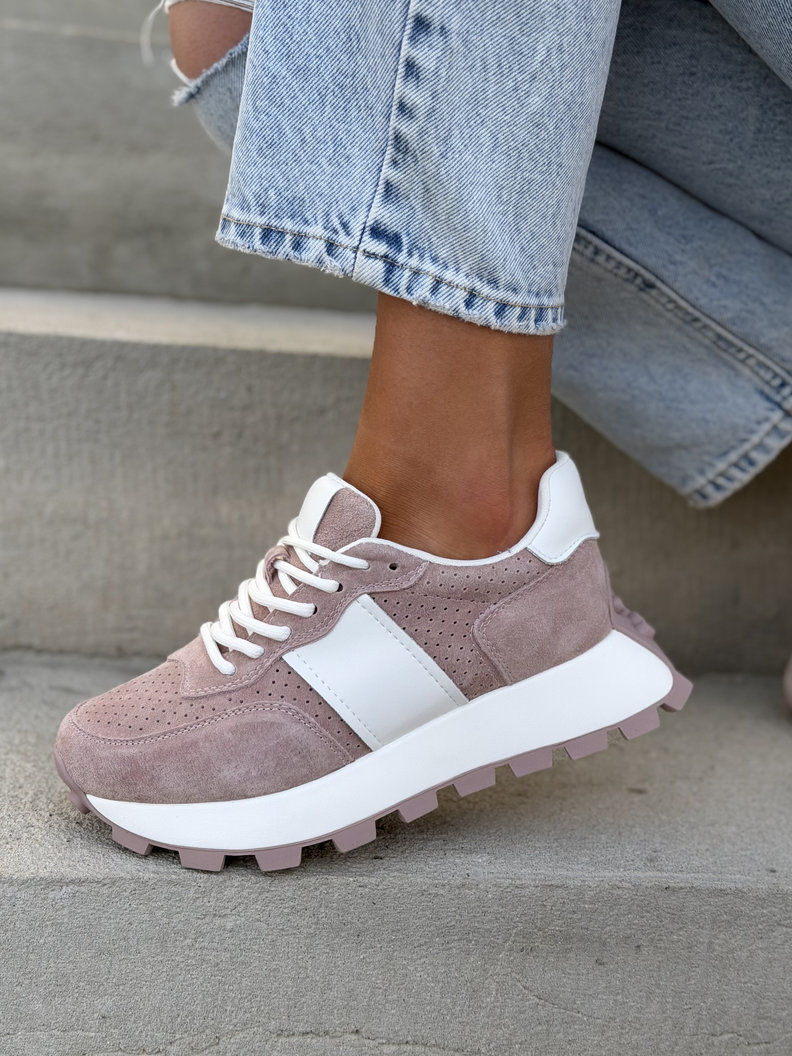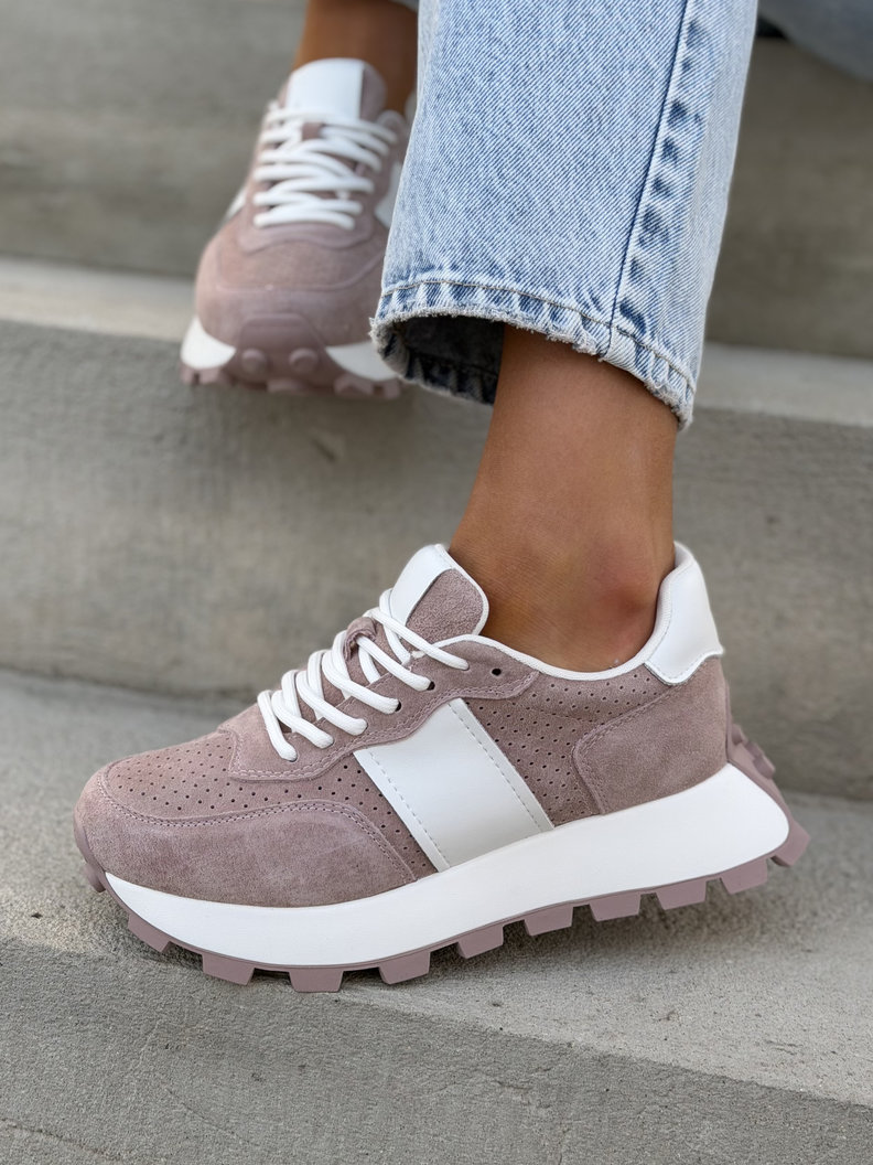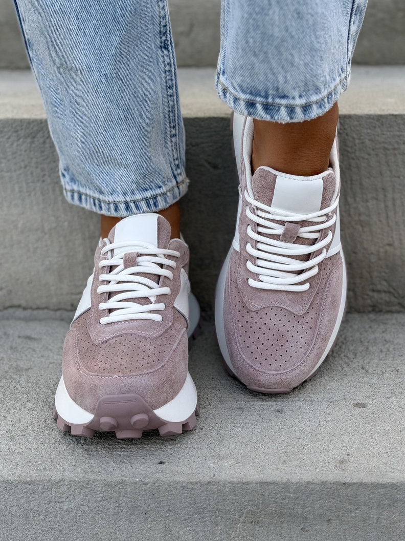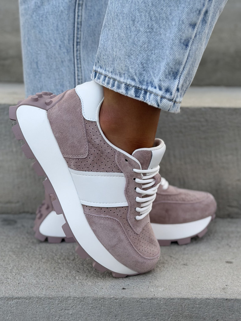 Ultralekkie sneakersy damskie z naturalnej skóry i przewiewnego materiału. Skórzane wnętrze i wkładka zapewniają maksymalny komfort przez cały dzień. Podeszwa 4 cm subtelnie wysmukla sylwetkę i dodaje modnego, nowoczesnego charakteru. To jeden z najbardziej pożądanych modeli tego sezonu – wygodne, premium i absolutnie topowe.