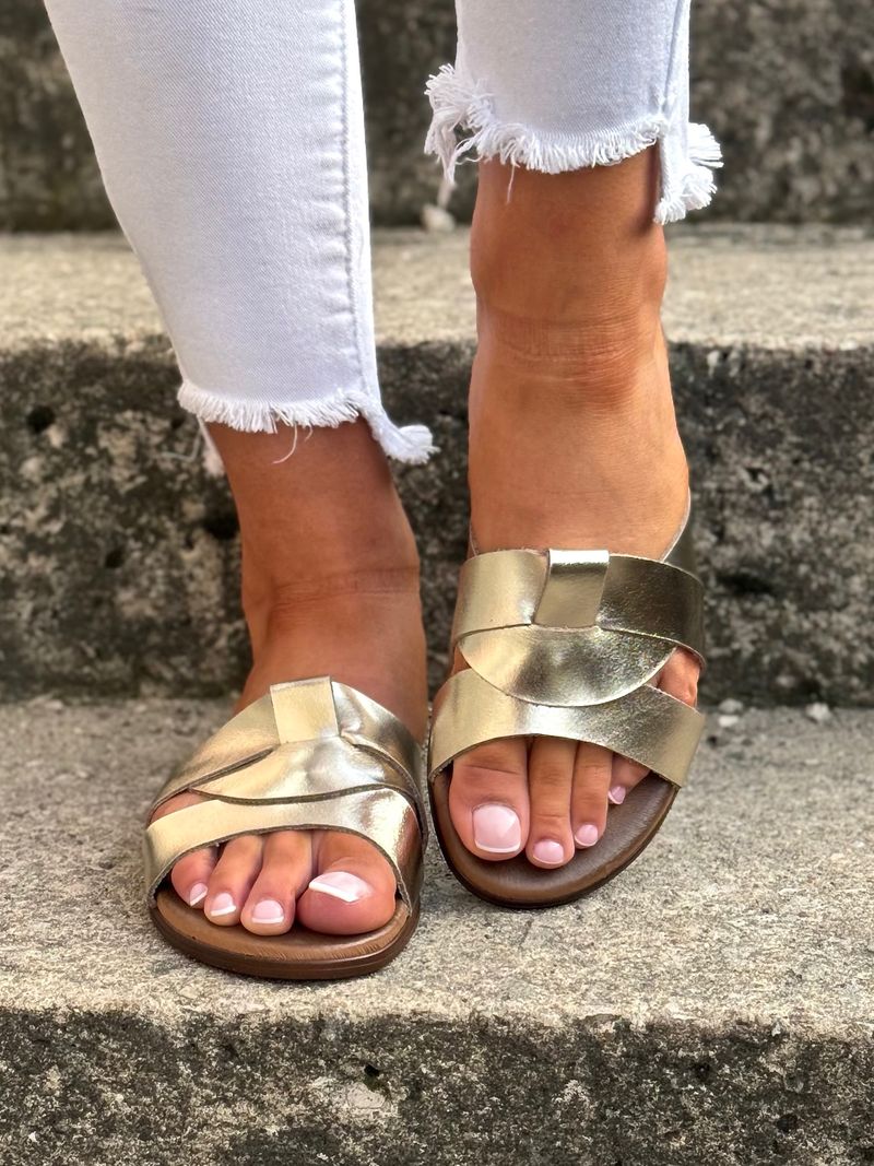 Klapki KAZADII MADONA GOLD skóra naturalna