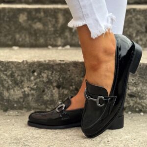 Wsuwane loafersy w kolorze czarnym to świetny wybór dla osób, które cenią sobie elegancję w nowoczesnym wydaniu. Lakierowane wykończenie dodaje im szyku, a neutralny odcień sprawia, że pasują do wielu stylizacji. Można je nosić na co dzień, do pracy czy na spotkania towarzyskie. Niezwykle wygodne i lekkie.