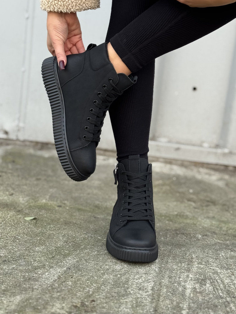 Botki  stworzone z myślą o codziennym użytkowaniu — wykonane z miękkiego nubuku w odcieniu ciepłego brązu, prezentują się elegancko i naturalnie. Są niesamowicie lekkie, a wewnętrzne ocieplenie miękkim kocem obuwniczym zapewnia przyjemne ciepło w chłodniejsze dni bez uczucia ciężkości. Grubsza, elastyczna podeszwa z bieżnikiem gwarantuje wygodę i stabilność, nawet podczas długich spacerów. Dzięki bocznemu suwakowi i sznurowaniu dopasujesz je idealnie do swojej stopy. To idealny wybór na co dzień — do jeansów, płaszcza czy sportowej kurtki.