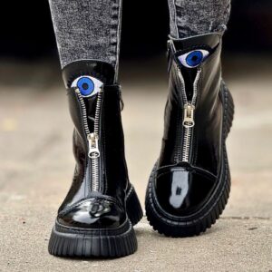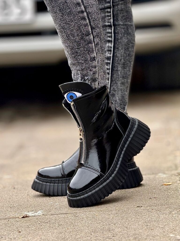 idealne w sezonie: jesień/zima (delikatnie ocieplone wewnątrz kocem obuwniczym) wietrzne i mroźne pogody im nie straszne. ZASUWANE na suwak po wewnętrznej stronie, natomiast na przodzie obuwia dekoracyjny suwak który możesz również odsuwać i zasuwać.