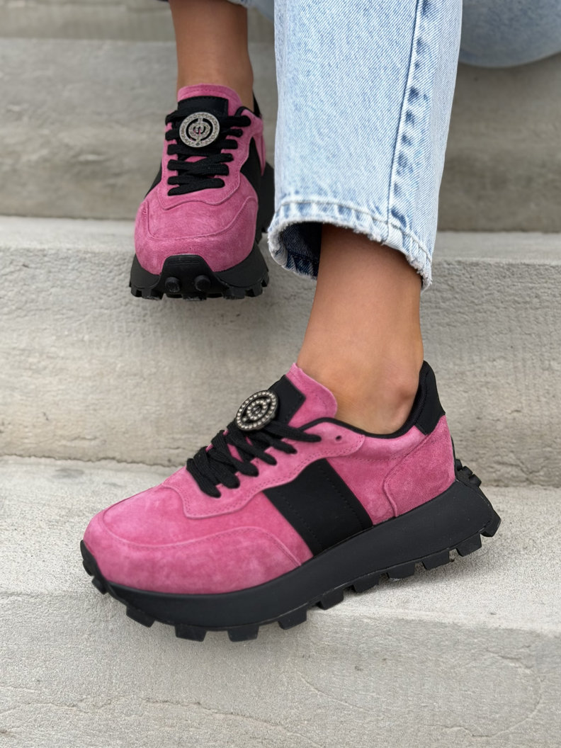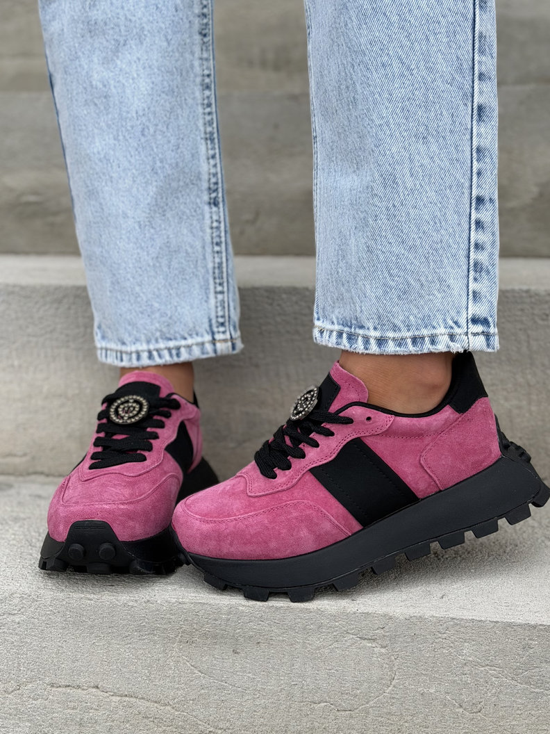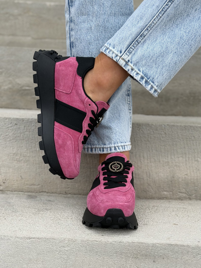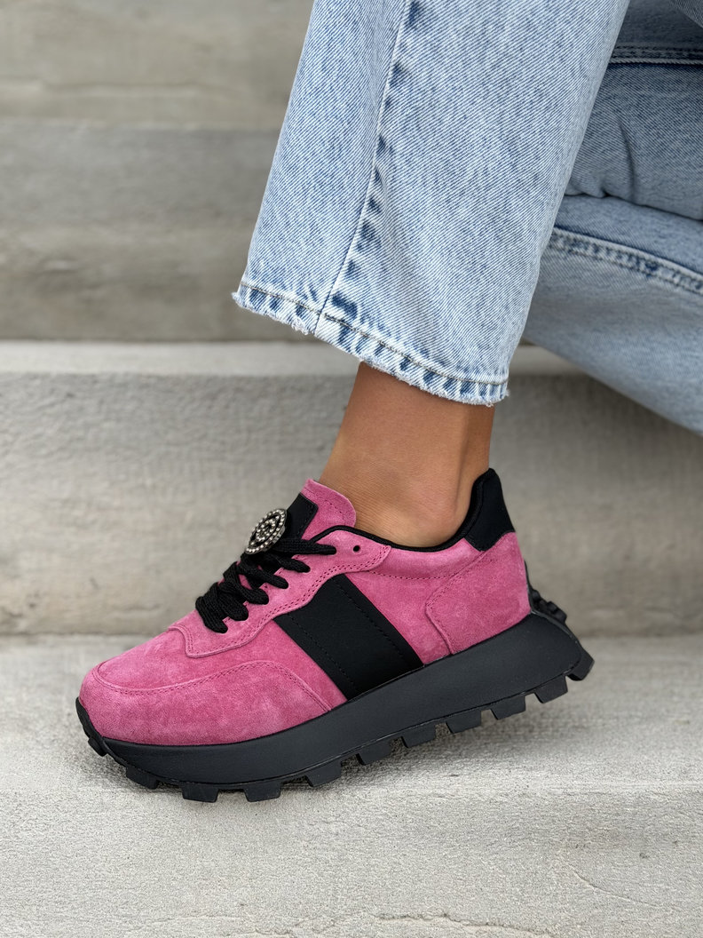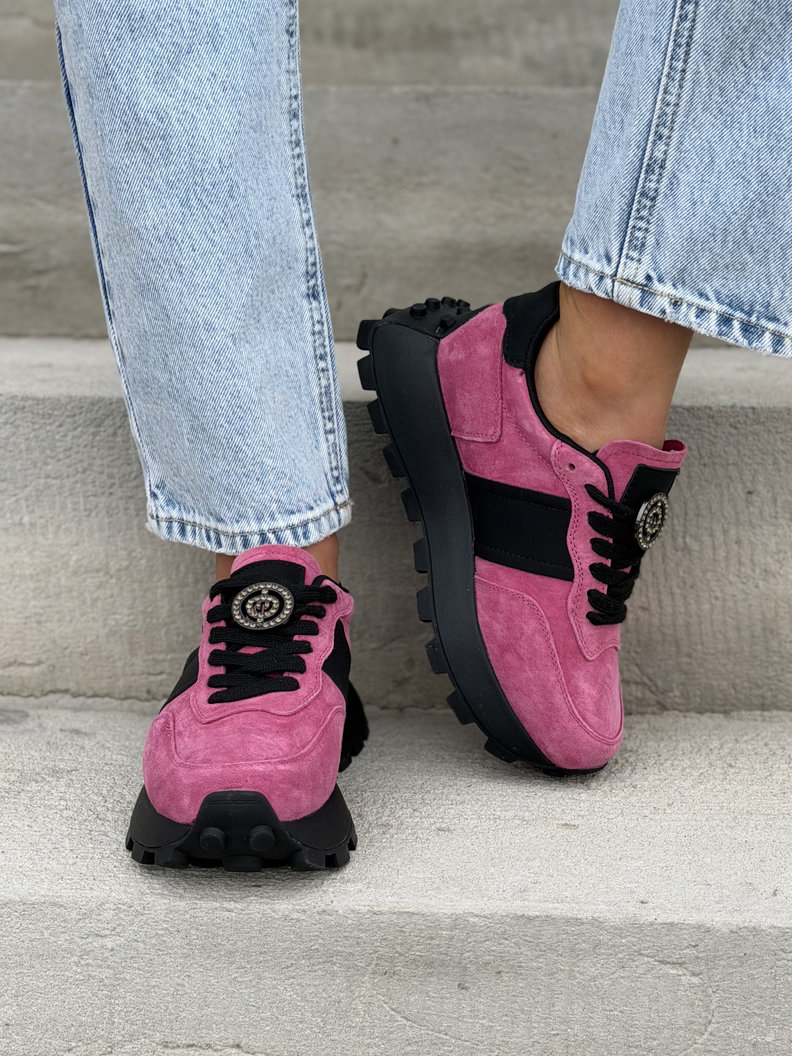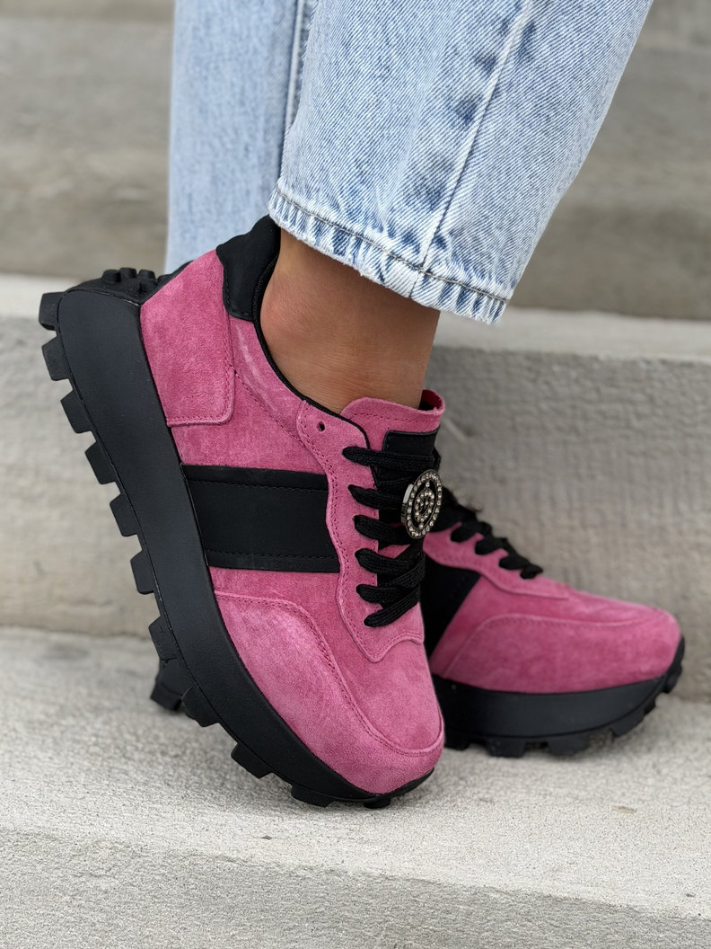 Lekkie jak piórko sneakersy HAVANA FUXIA na wyższej podeszwie skóra naturalna