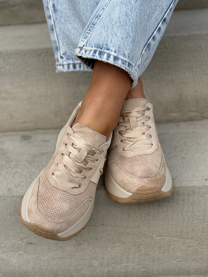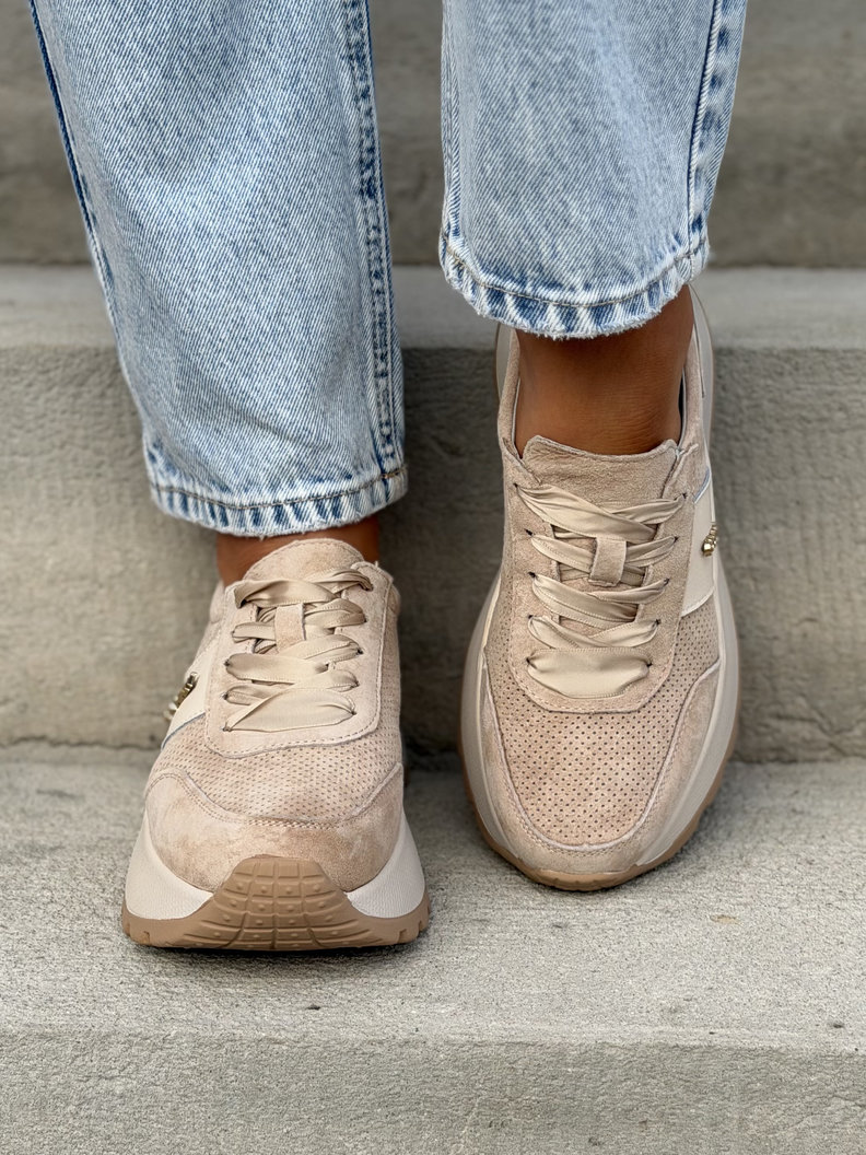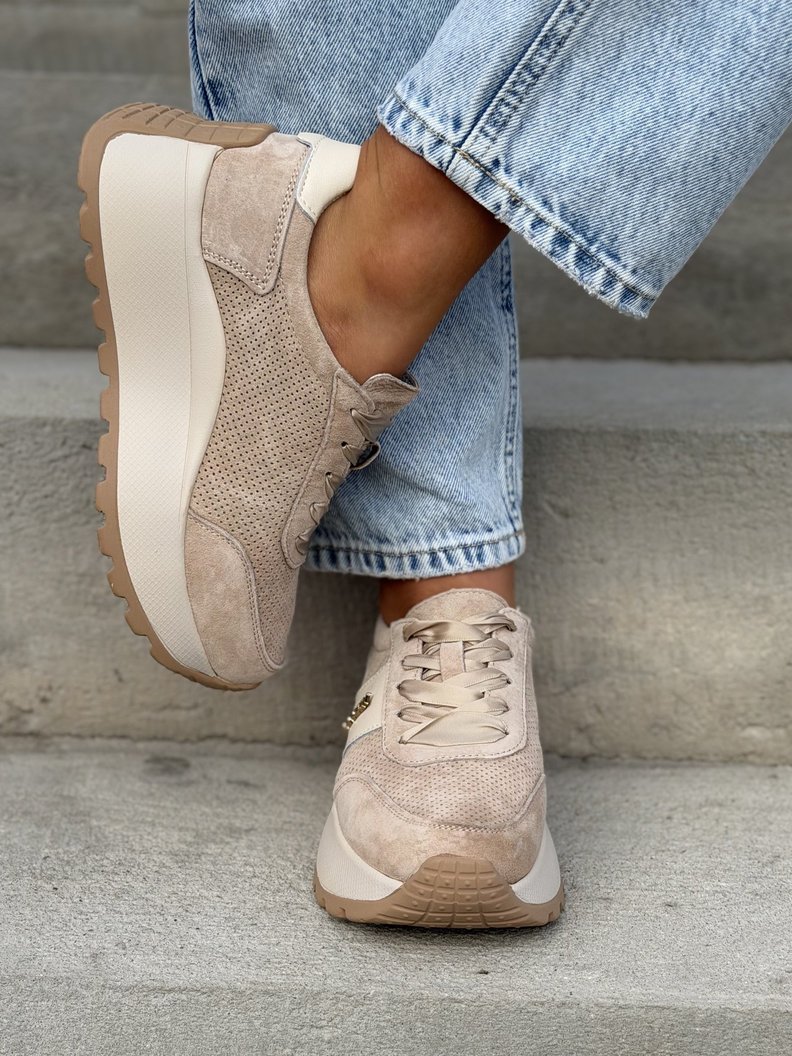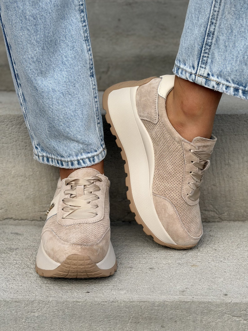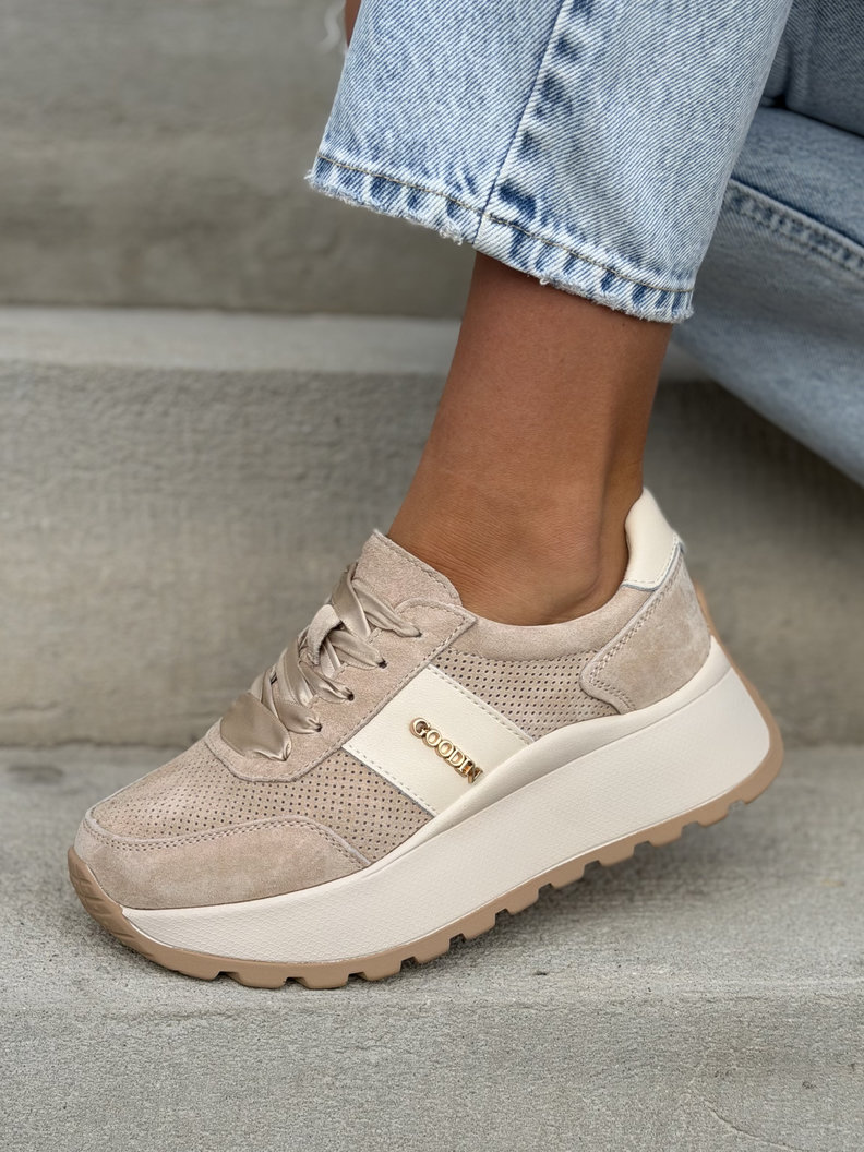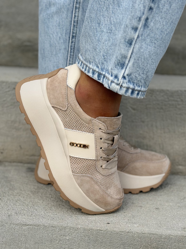 Lekkie jak piórko sneakersy LAVENA BEIGE na wyższej podeszwie skóra naturalna
