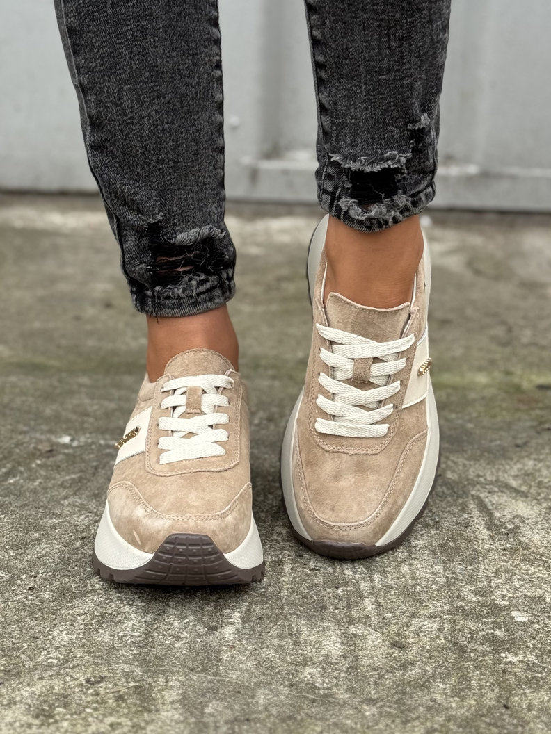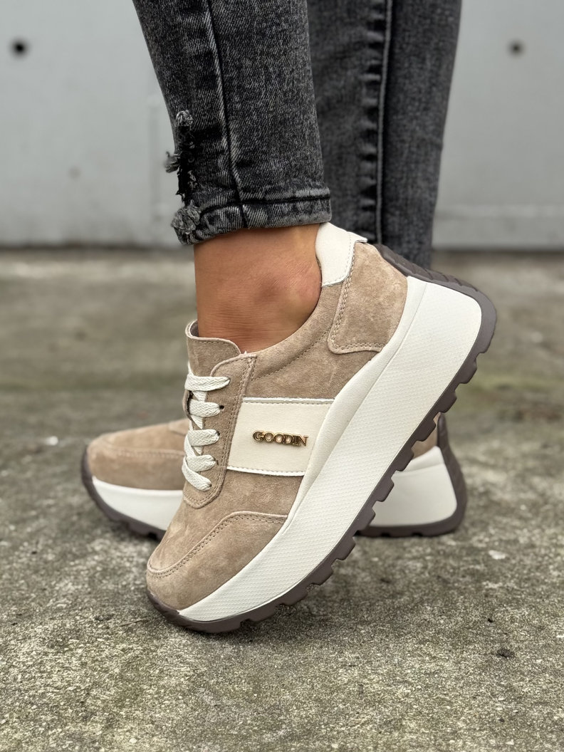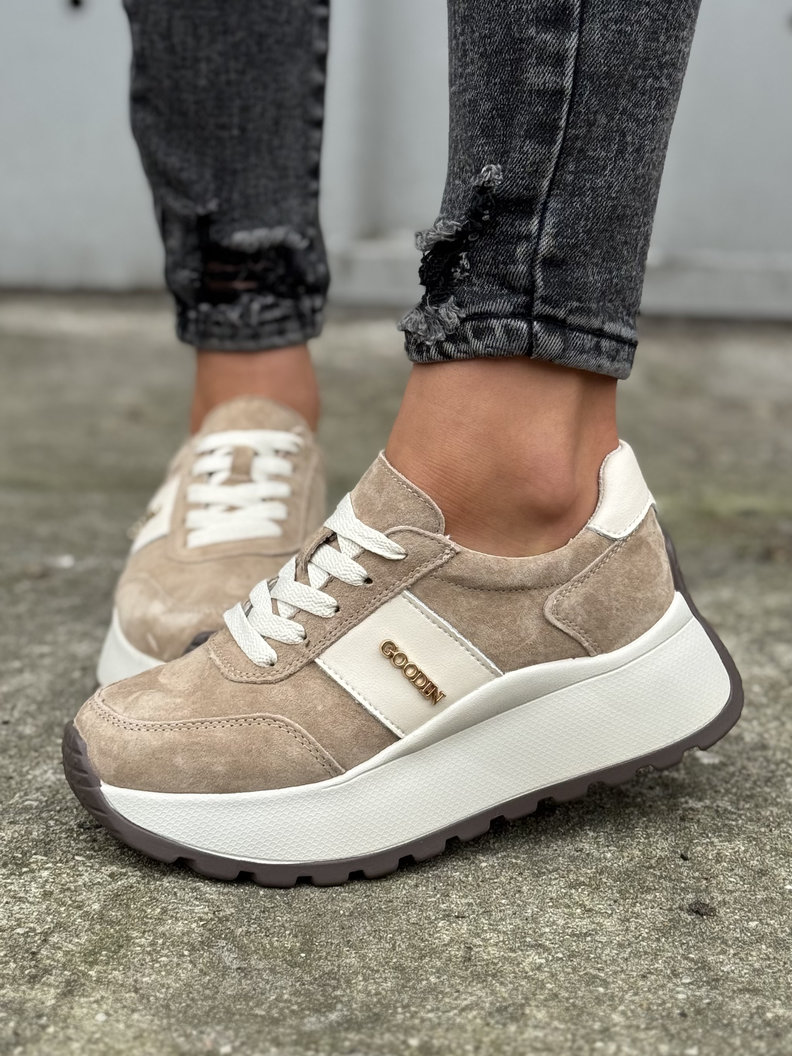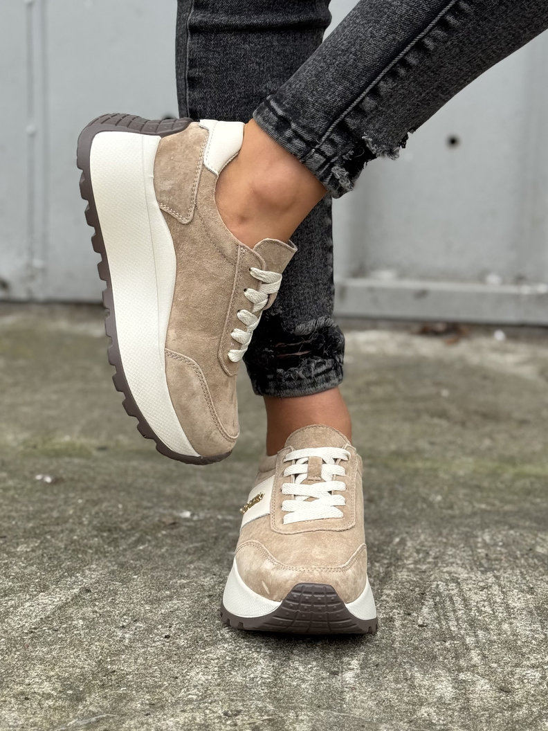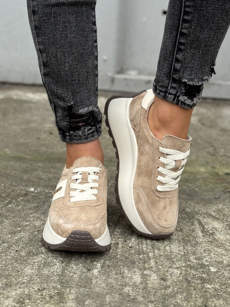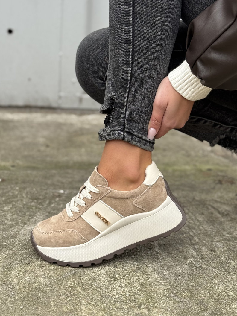 Lekkie jak piórko sneakersy SAVIA BEIGE na wyższej podeszwie skóra naturalna