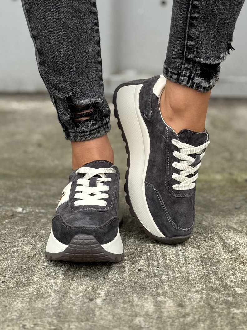 Lekkie i niezwykle wygodne sneakersy wykonane z miękkiej, naturalnej skóry. W środku połączenie skóry i oddychającej dzianiny, dzięki czemu stopa ma komfort przez cały dzień. Modna, podwyższona podeszwa świetnie wysmukla sylwetkę, a jednocześnie zapewnia miękkie, sprężyste odbicie przy każdym kroku. Idealne do codziennych stylizacji – od jeansów po sportowe komplety. Dostępne w pięknych, kobiecych kolorach, które podkręcą każdy look. Komfort, styl i jakość, którą czuć od pierwszego założenia.