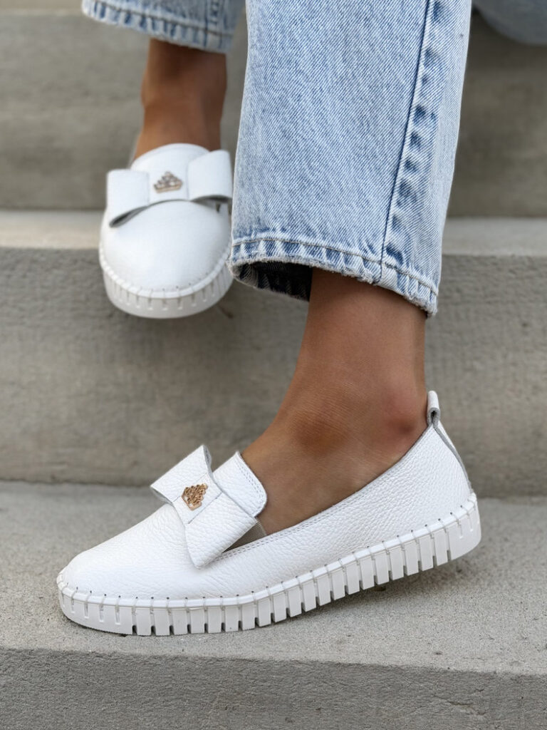 Lekkie mokasyny damskie marki KAZADII w stylu espadryli wykonane ze skóry naturalnej.