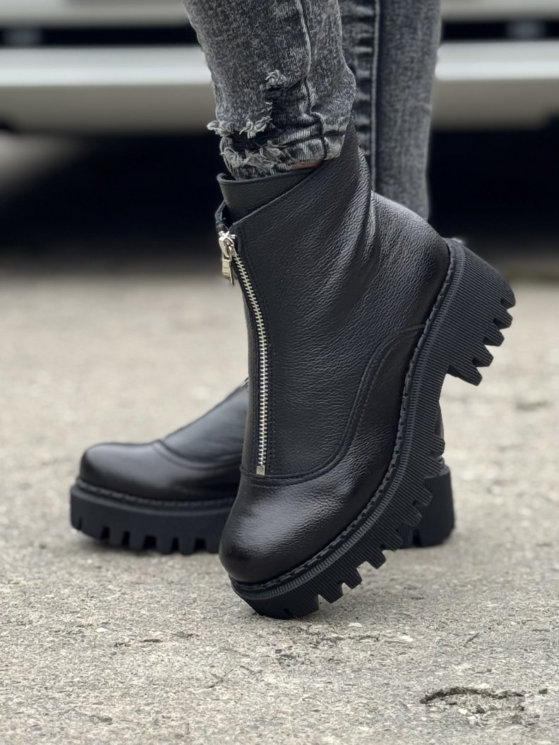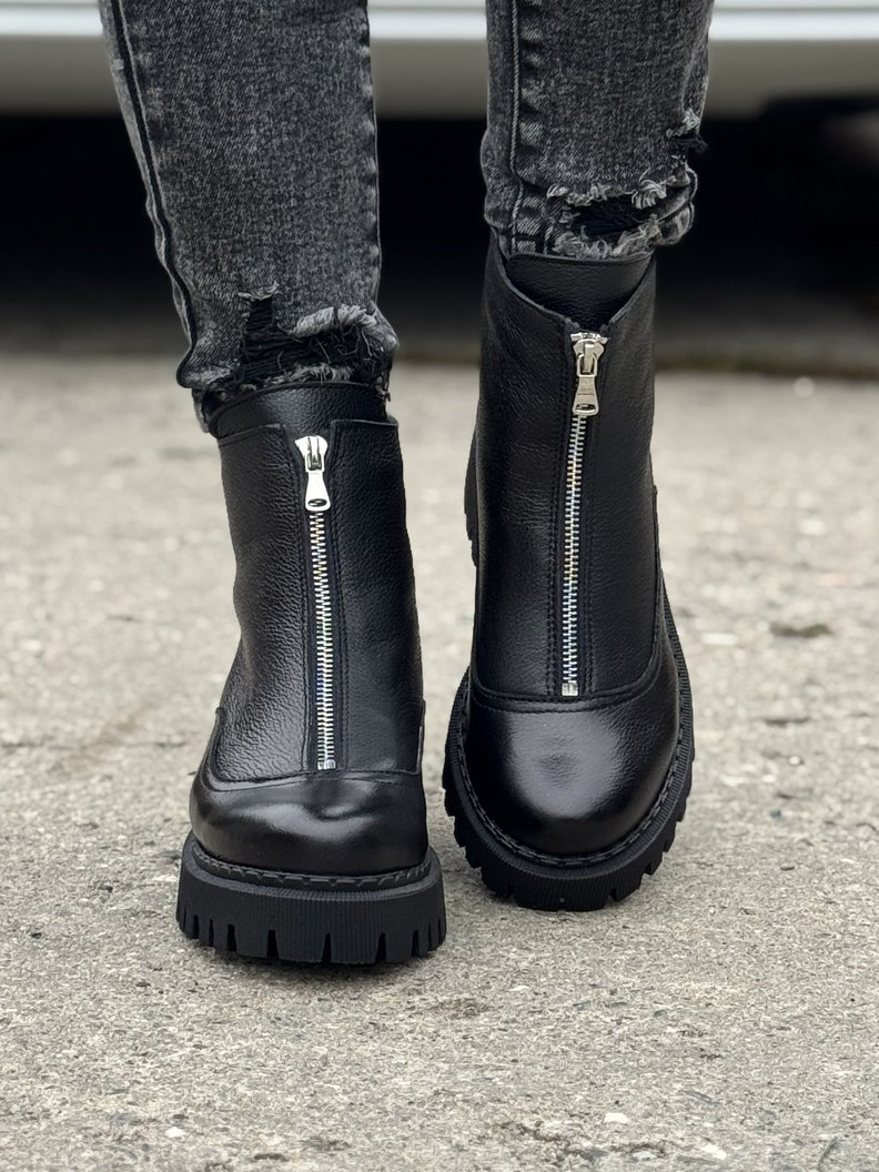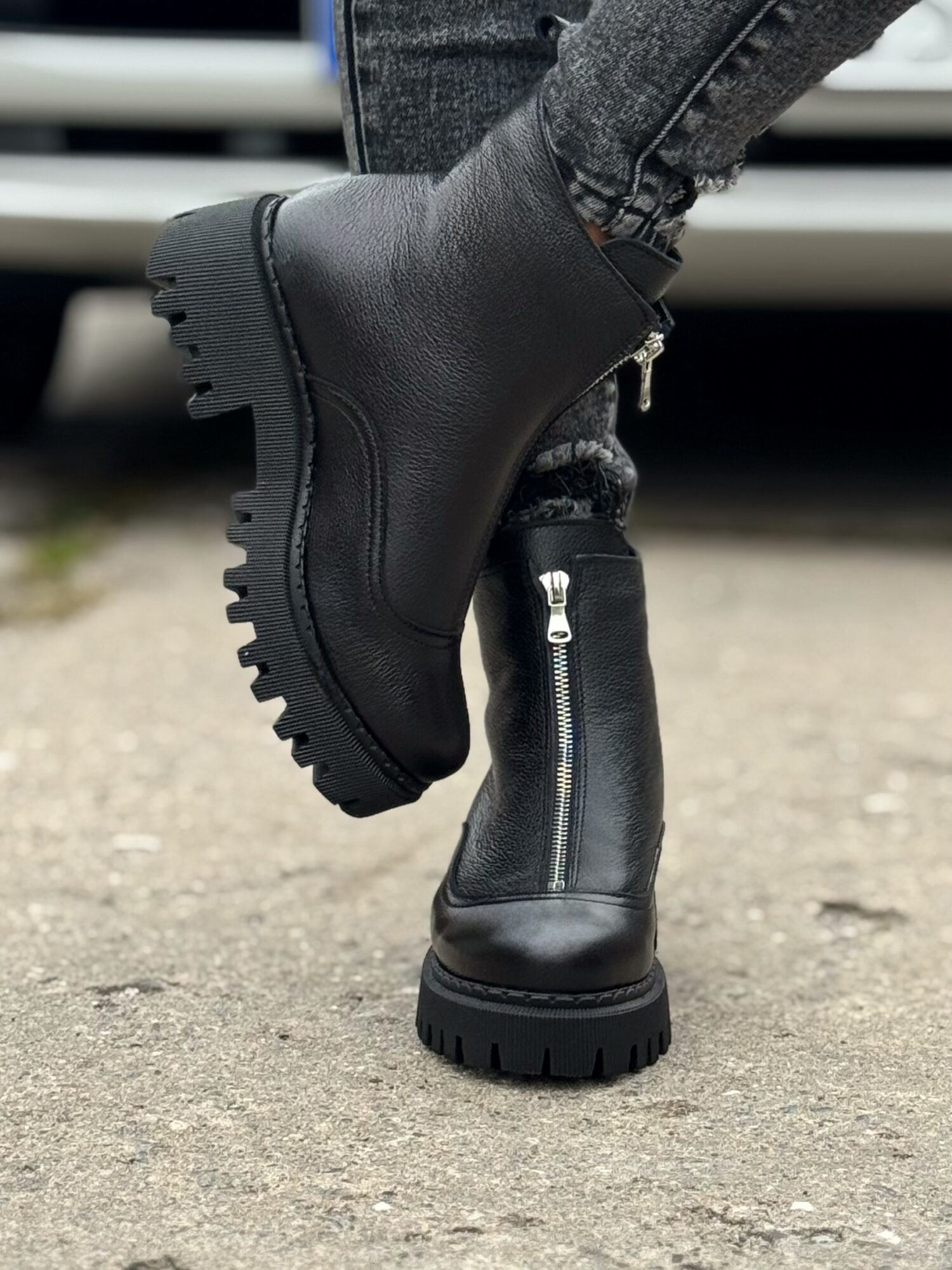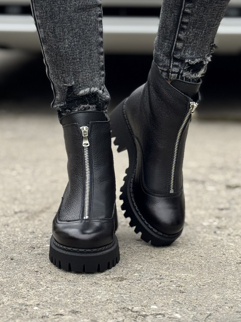 Lekkie botki Kazadi Marita wykonane ze skóry naturalnej, z traperkową podeszwą zapewniają stabilny krok w każdych warunkach. Antypoślizgowa podeszwa dba o bezpieczeństwo, a staranna polska produkcja gwarantuje najwyższą jakość. Praktyczny suwak z przodu sprawia, że zakładanie jest szybkie i wygodne. Idealne na chłodniejsze dni, ocieplane w środku obuwia kocem obuwniczym, łączą wygodę z modnym, miejskim lookiem.