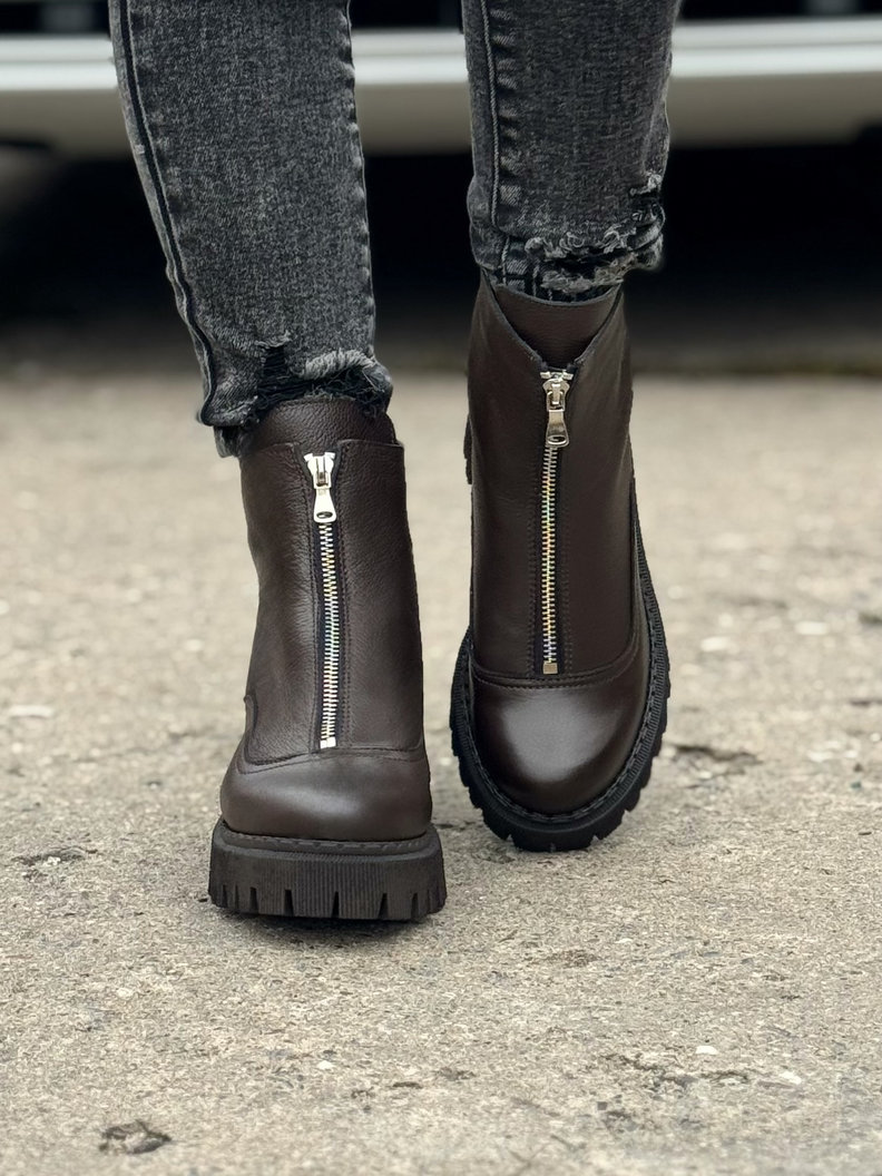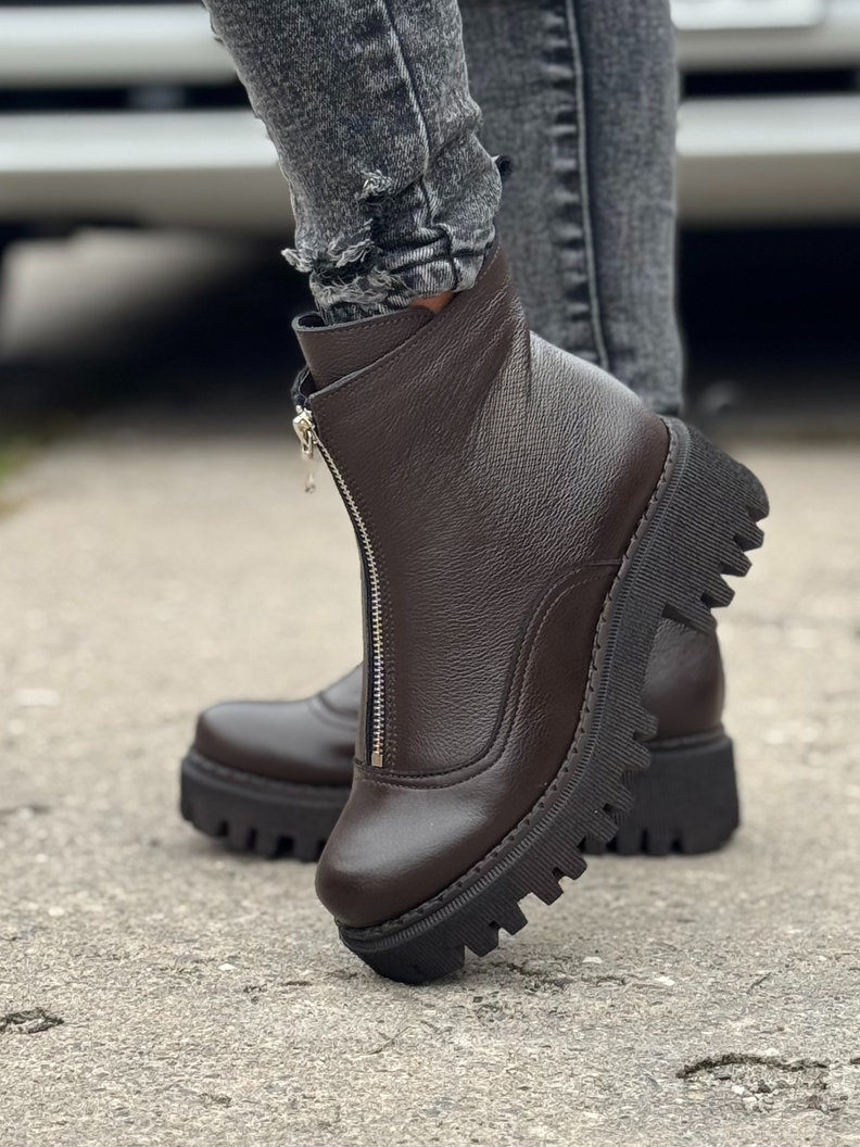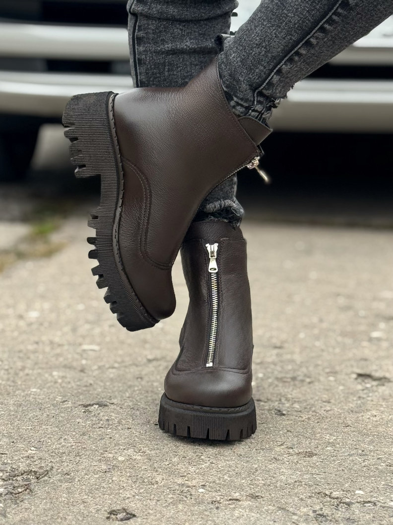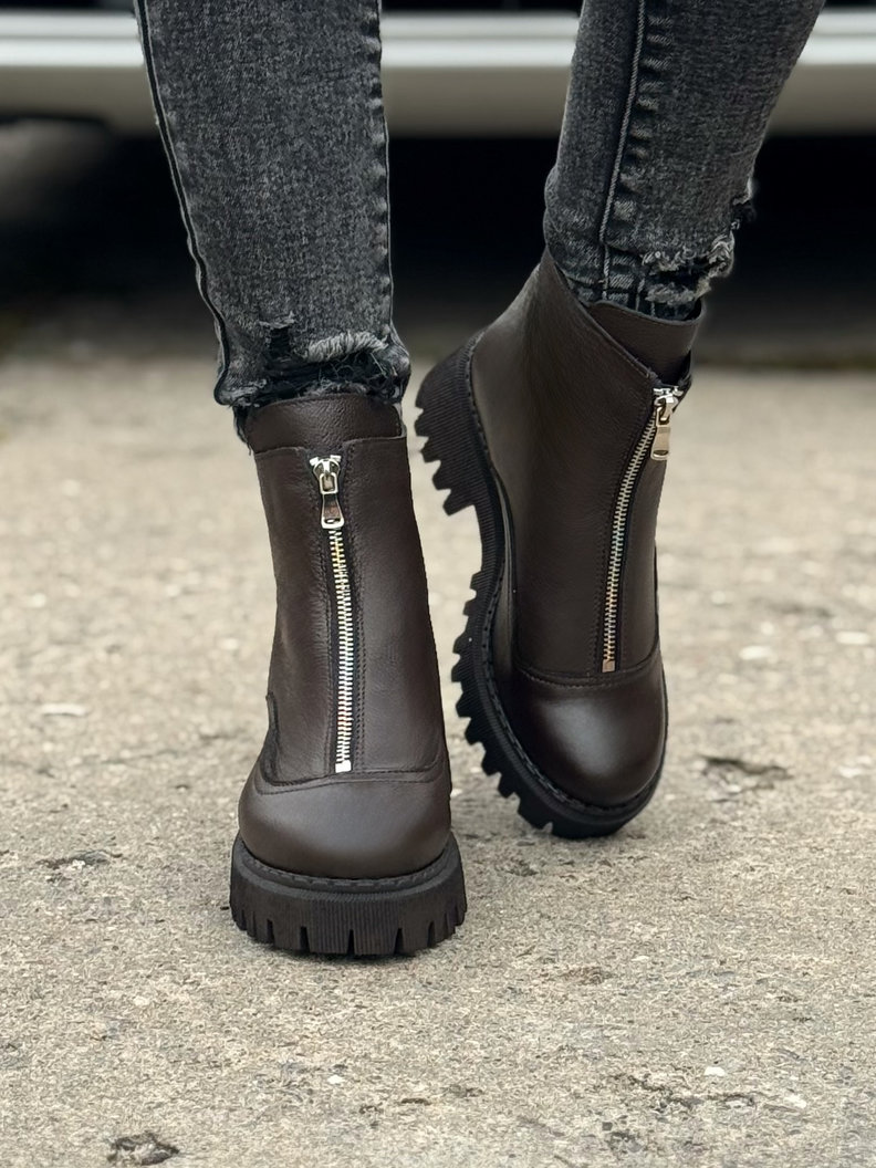 Lekkie botki Kazadi Marita wykonane ze skóry naturalnej, z traperkową podeszwą zapewniają stabilny krok w każdych warunkach. Antypoślizgowa podeszwa dba o bezpieczeństwo, a staranna polska produkcja gwarantuje najwyższą jakość. Praktyczny suwak z przodu sprawia, że zakładanie jest szybkie i wygodne. Idealne na chłodniejsze dni, ocieplane w środku obuwia kocem obuwniczym, łączą wygodę z modnym, miejskim lookiem.
