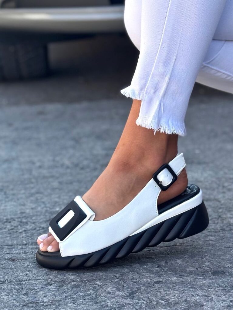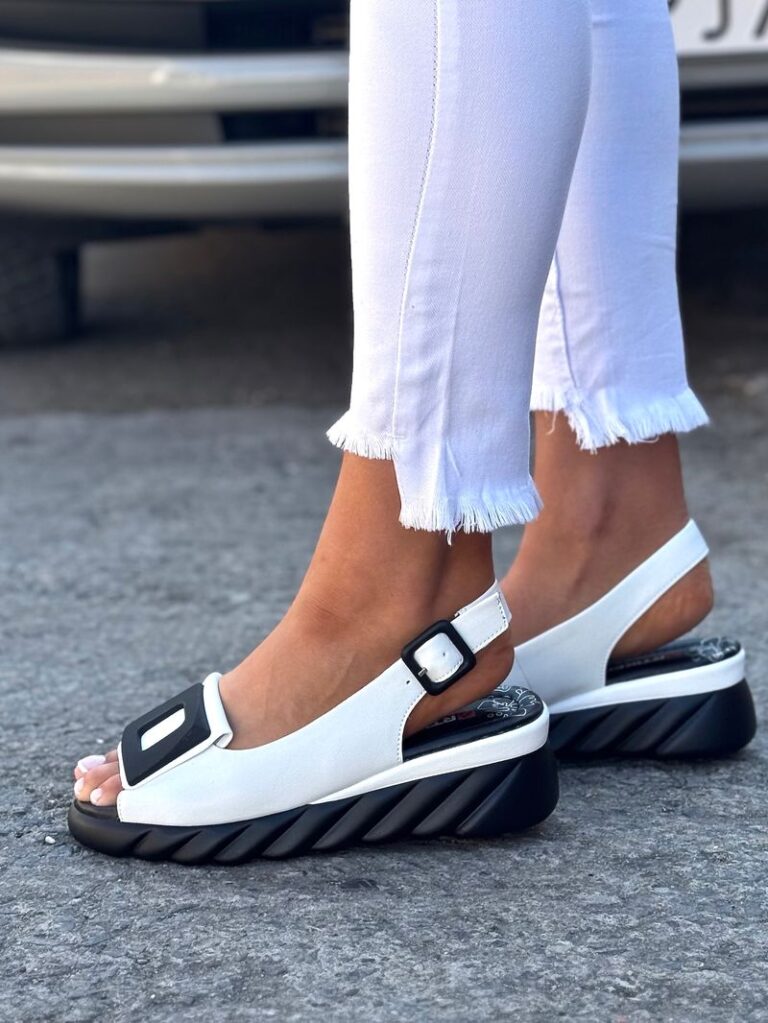 Wyjątkowe sandały w kolorze białym na ultrawygodnej, lekkiej czarnej platformie. Miękka wkładka, nowoczesny design i regulowane zapięcie – idealne na lato, do jeansów i sukienek. Komfort i styl w jednym