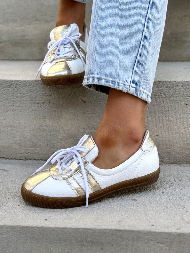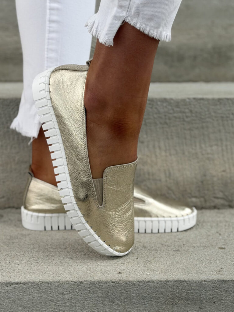LEKKIE SLIP’ONY KAZADII SOFTIA WHITE GOLD KOKARDA skóra naturalna