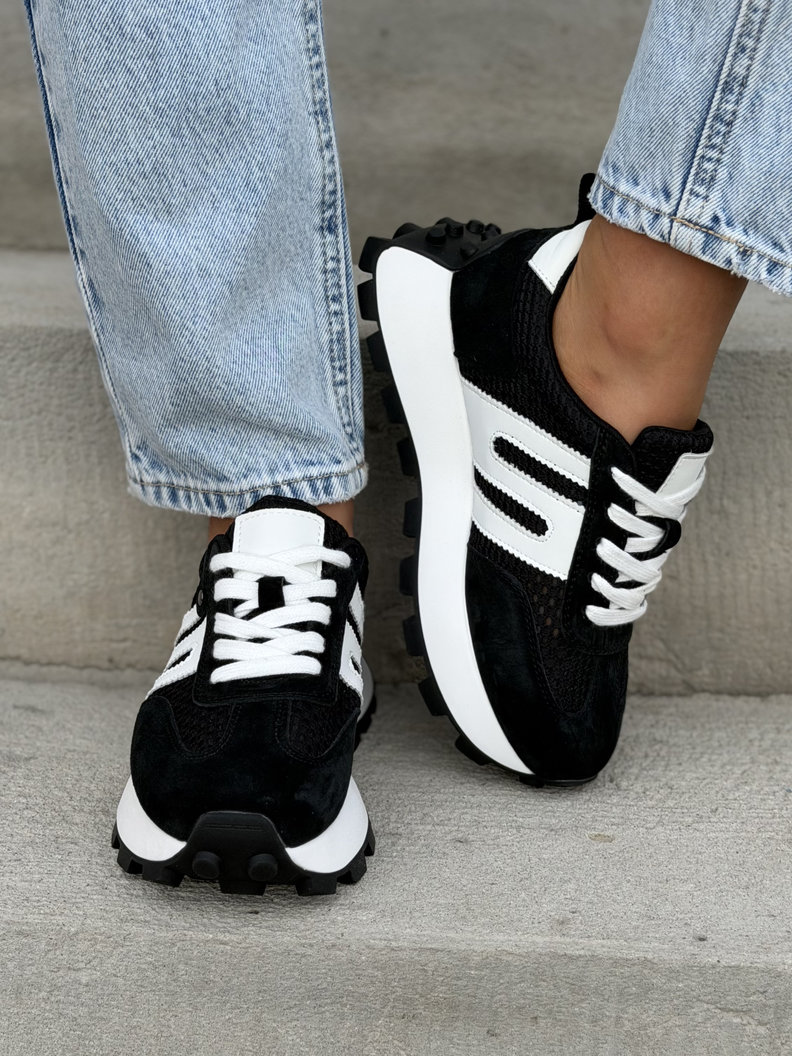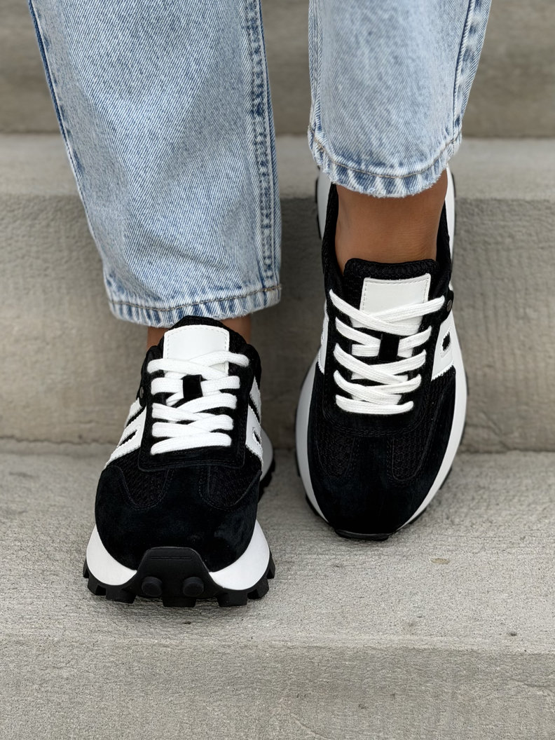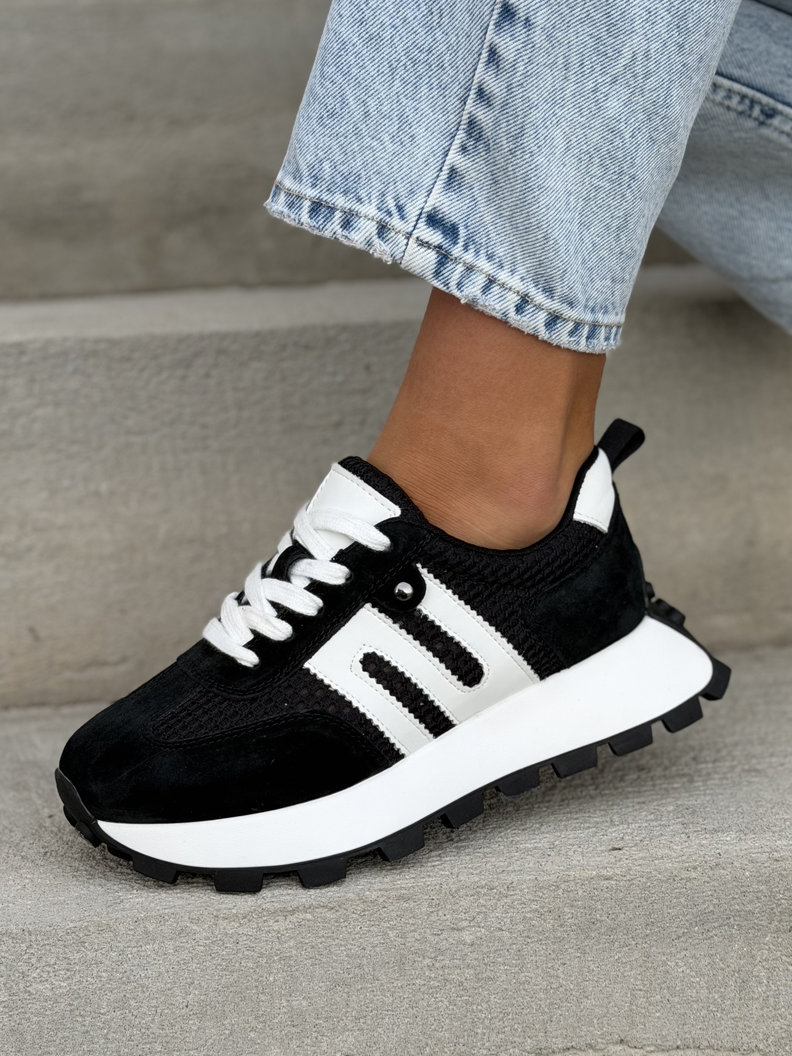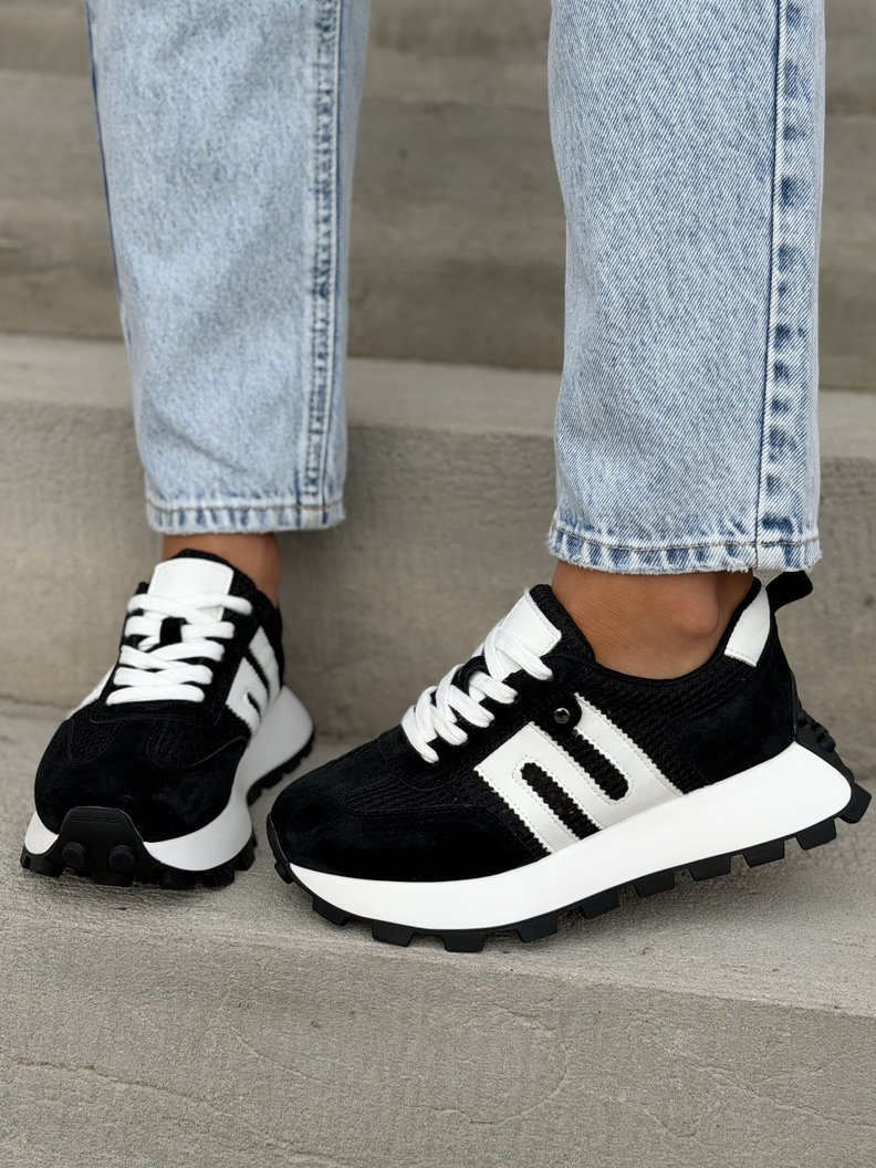 Ultralekkie sneakersy damskie z naturalnej skóry i przewiewnego materiału. Skórzane wnętrze i wkładka zapewniają maksymalny komfort przez cały dzień. Podeszwa 4 cm subtelnie wysmukla sylwetkę i dodaje modnego, nowoczesnego charakteru. To jeden z najbardziej pożądanych modeli tego sezonu – wygodne, premium i absolutnie topowe.