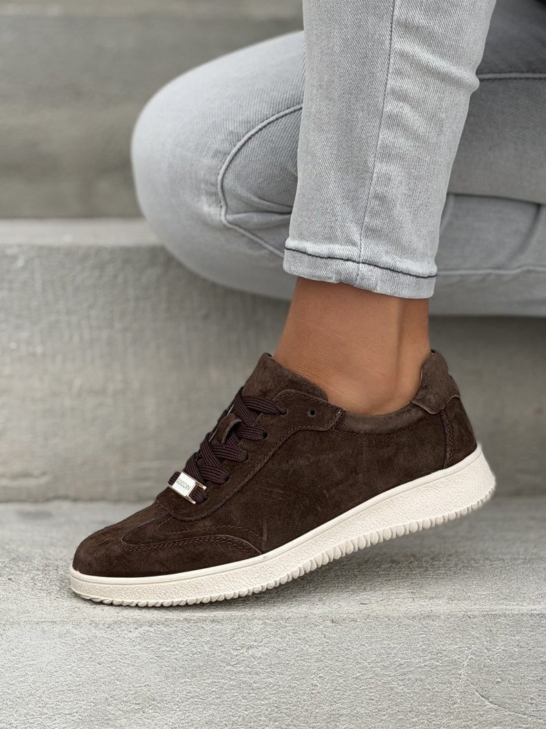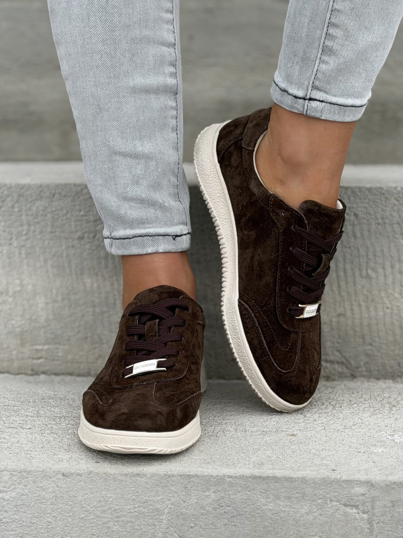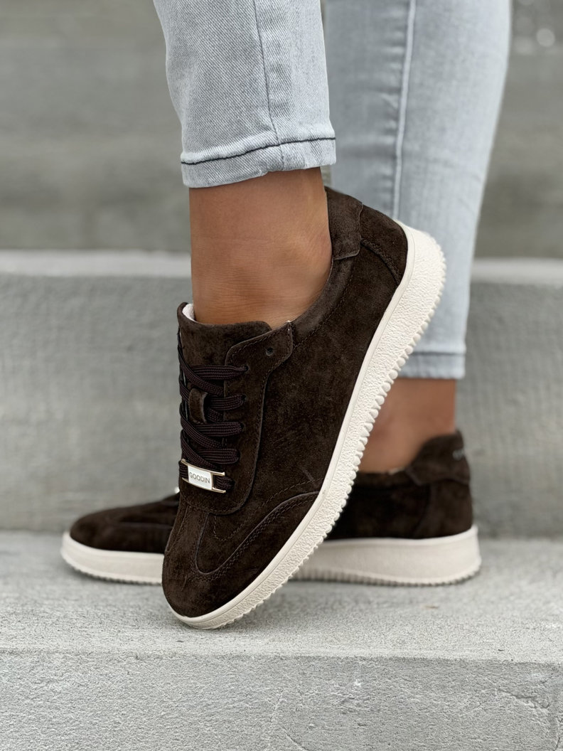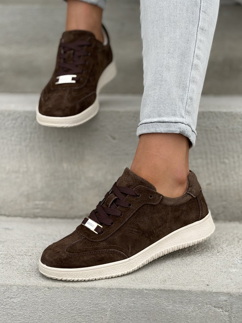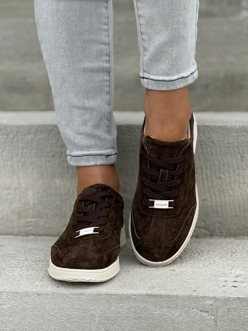 Miękka naturalna skóra, piękny czekoladowy brąz i wygoda, którą czuć od pierwszego kroku. Te sneakersy są stworzone na codzienne tempo – oddychające wnętrze z ekologicznej dzianiny i skórzana wkładka sprawiają, że stopa ma komfort przez cały dzień. Pasują do jeansów, garniturowych spodni i miejskich stylizacji bez wysiłku. Proste, stylowe, takie które zostaną na dłużej.