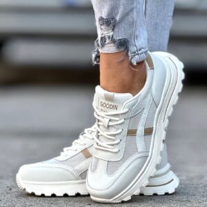 Lekkie sportowe buty LIMA WHITE BEIGE skóra naturalna
