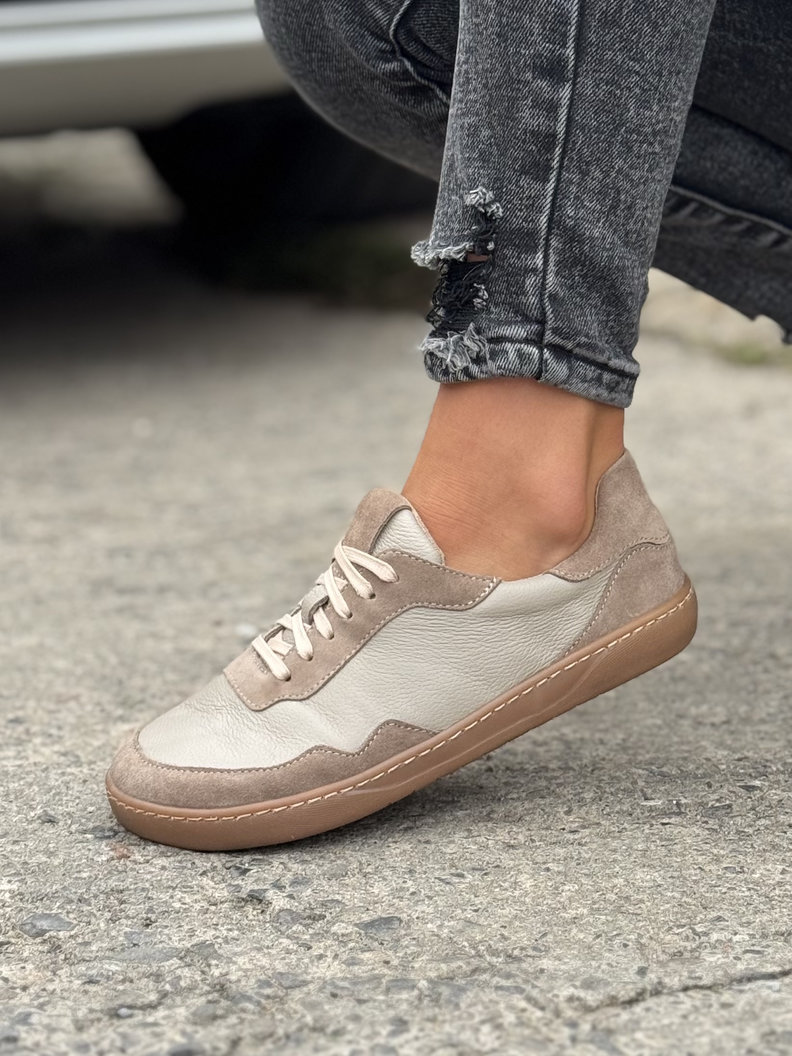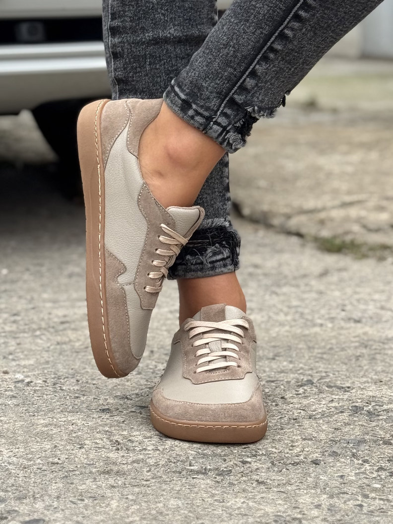 Kazadii Barefoot Soft to lekkie trampki damskie stworzone z połączenia miękkiego zamszu i skóry typu groch. Ich szerszy nosek zapewnia naturalne ułożenie palców i pełną swobodę ruchu, zgodnie z ideą chodzenia boso. Elastyczna, cienka podeszwa pozwala stopie pracować w naturalny sposób, wspierając jej prawidłową biomechanikę i komfort na każdym kroku. Model wykonany w Polsce z najwyższej jakości materiałów, powstał w oparciu o wieloletnie doświadczenie marki Kazadii w projektowaniu obuwia premium. Rekomendowane przez polskich podologów i fizjoterapeutów jako obuwie wspierające zdrowy, naturalny ruch stopy.