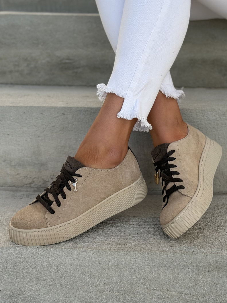 Lekkie trampki KAZADII BUENOS BEIGE CHOCO skóra naturalna