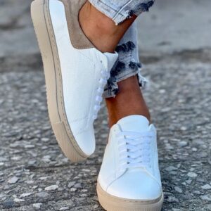 Ich beżowy, niski spód to hit sezonu – subtelnie wysmukla sylwetkę i dodaje lekkości każdej stylizacji. Dodatkowo, beżowy zapiętek uzupełnia całość, nadając im wyjątkowego charakteru. Elegancja i wygoda na każdym kroku! Kazadii Empire White Beige to trampki, które łączą nowoczesny design z najwyższą jakością. Wykonane z włoskiej naturalnej skóry, oferują komfort i trwałość przez cały dzień. Idealne na co dzień – do pracy, na spacer, czy spotkania ze znajomymi.