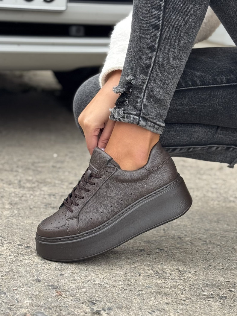 Wyższa, lekka jak piórko podeszwa o wysokości 4,5 cm doskonale amortyzuje każdy krok, a jednocześnie subtelnie podkreśla sylwetkę. Modny, minimalistyczny design sprawia, że te trampki są absolutnym hitem tego sezonu, idealnym wyborem dla osób ceniących nowoczesny styl połączony z komfortem.