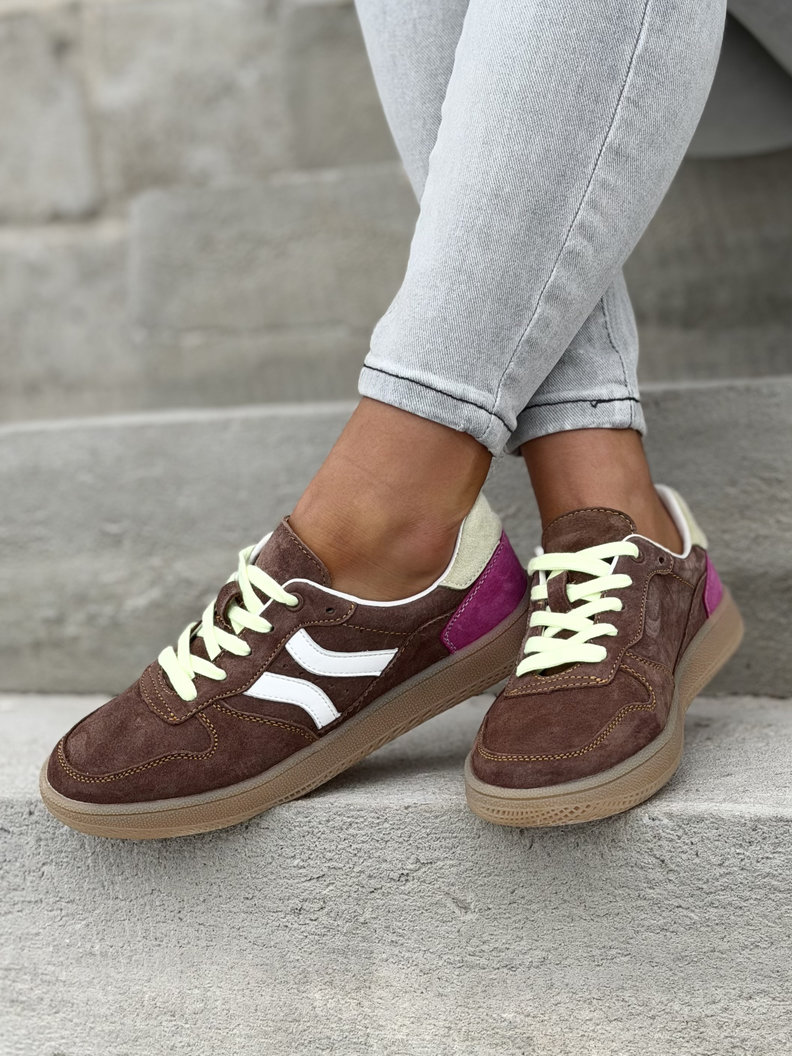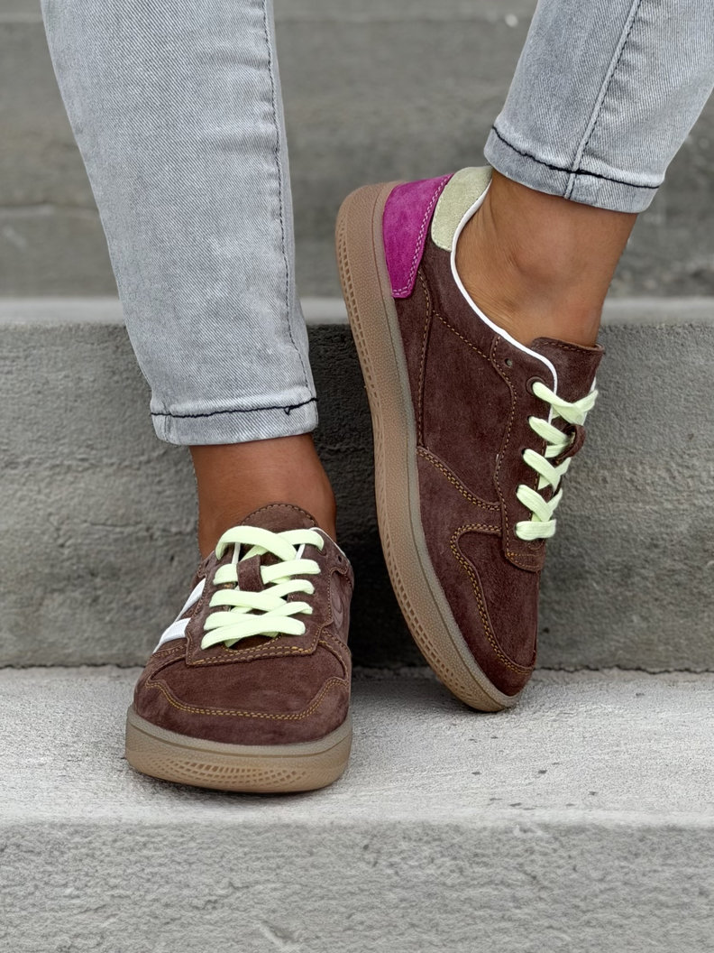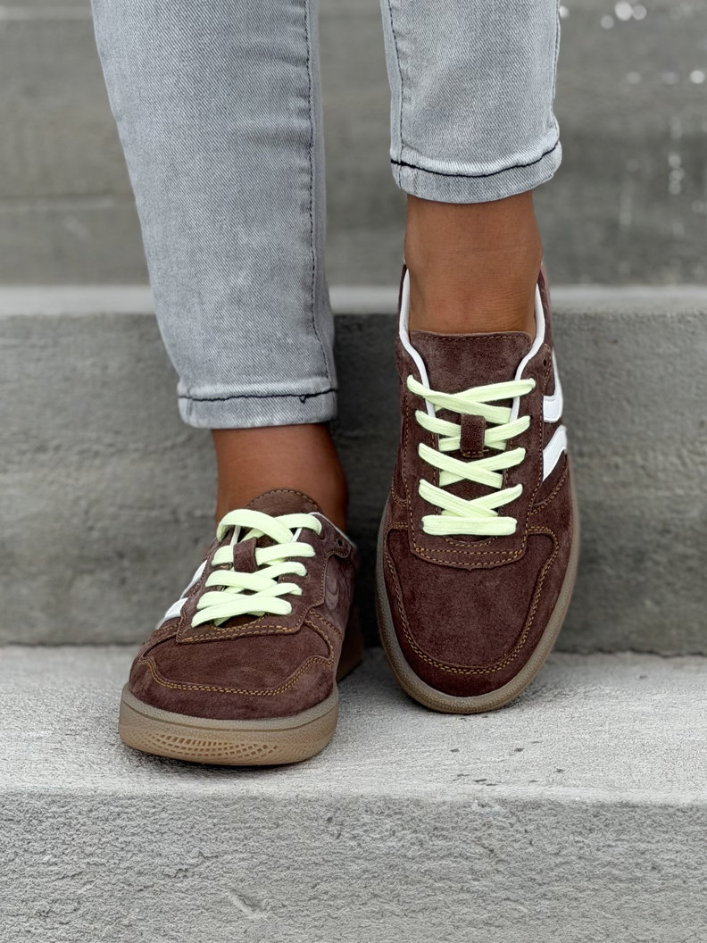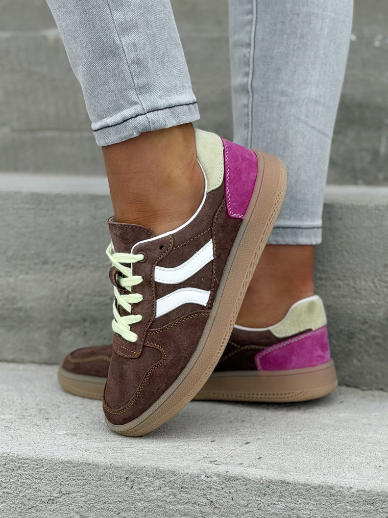 Trampki wykonane z wysokiej jakości skóry naturalnej. Wkładka ze skóry naturalnej zapewnia komfort i dopasowanie do stopy, natomiast wnętrze wokół wkładki wykonane z oddychającej, ekologicznej dzianiny gwarantuje świeżość i wygodę przez cały dzień. Lekka konstrukcja i elastyczna podeszwa sprawiają, że model idealnie sprawdza się w codziennym użytkowaniu.