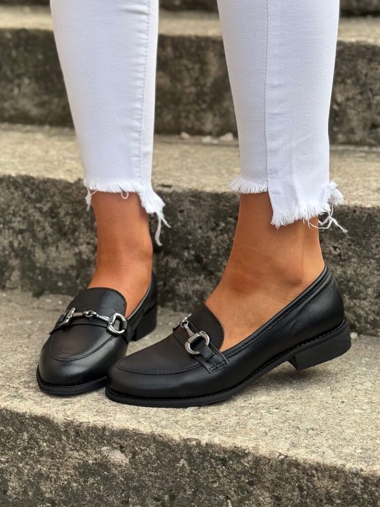 Wsuwane loafersy w kolorze czarnym to świetny wybór dla osób, które cenią sobie elegancję w nowoczesnym wydaniu. Skórzane wykończenie dodaje im szyku, a neutralny odcień sprawia, że pasują do wielu stylizacji. Można je nosić na co dzień, do pracy czy na spotkania towarzyskie. Niezwykle wygodne i lekkie.