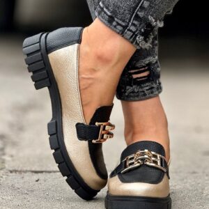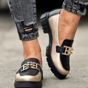 Niezwykle wygodne, zdobione na przodzie klamrą w kolorze złota, odpowiednie do każdego typu stopy.