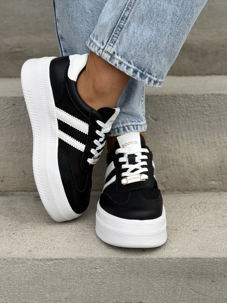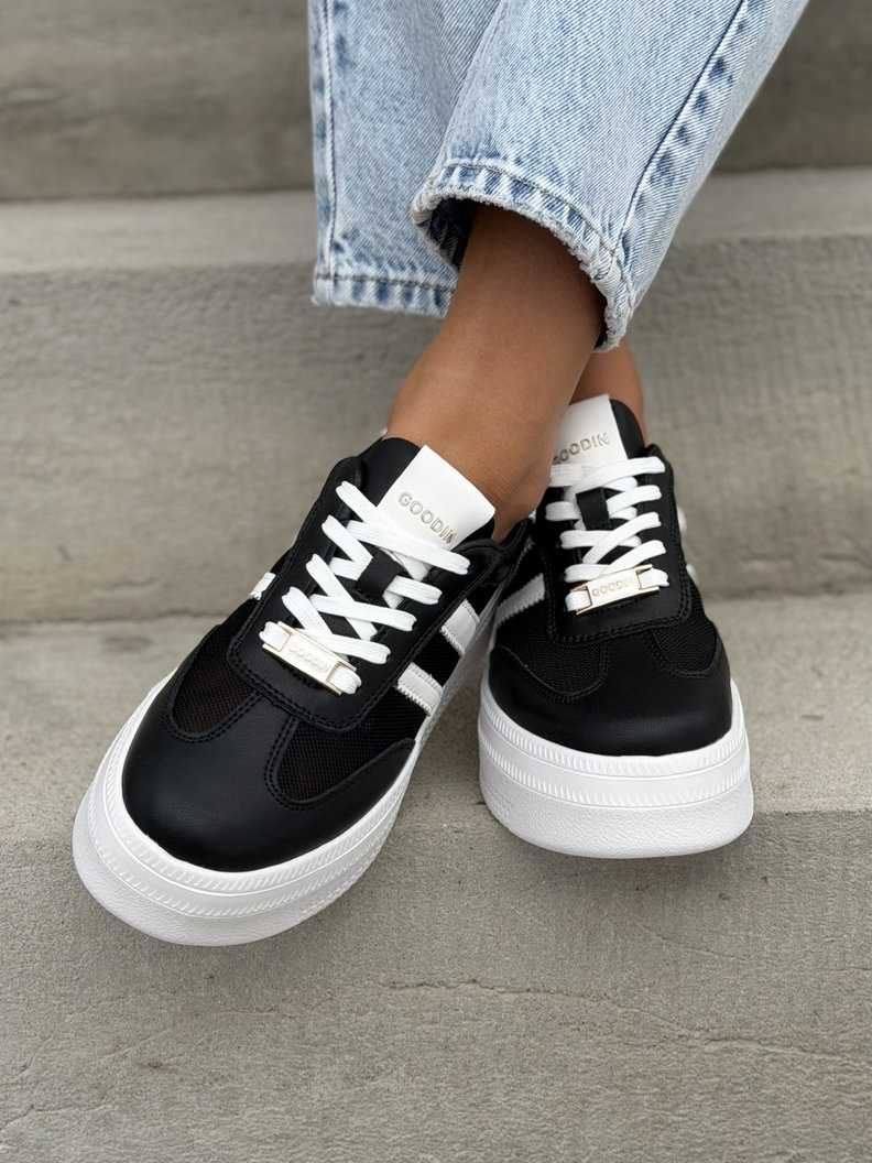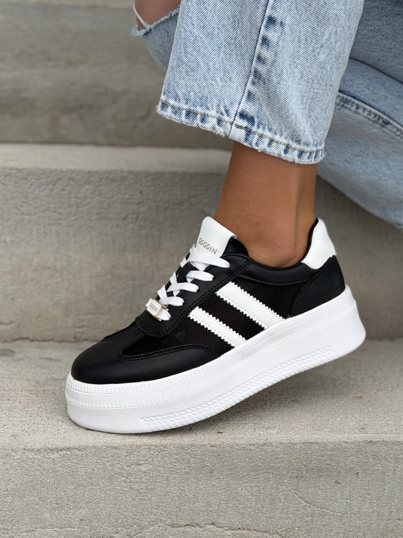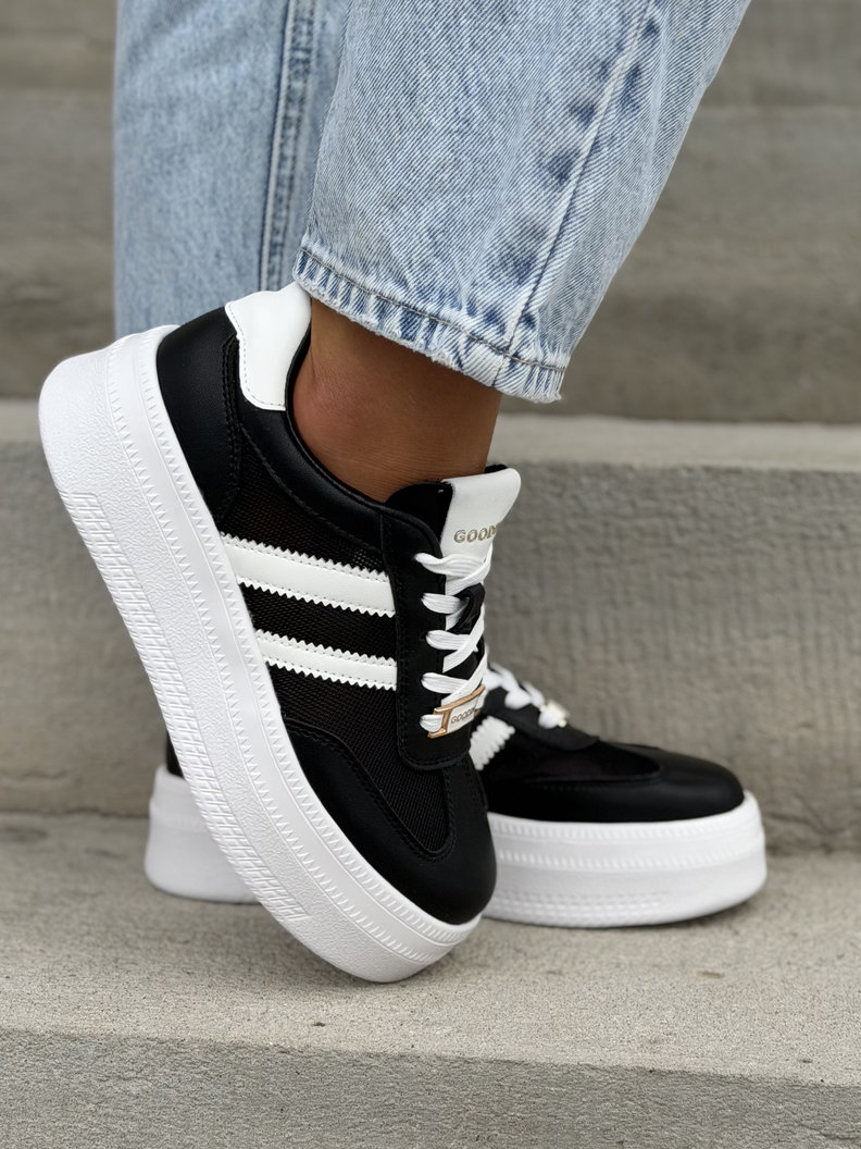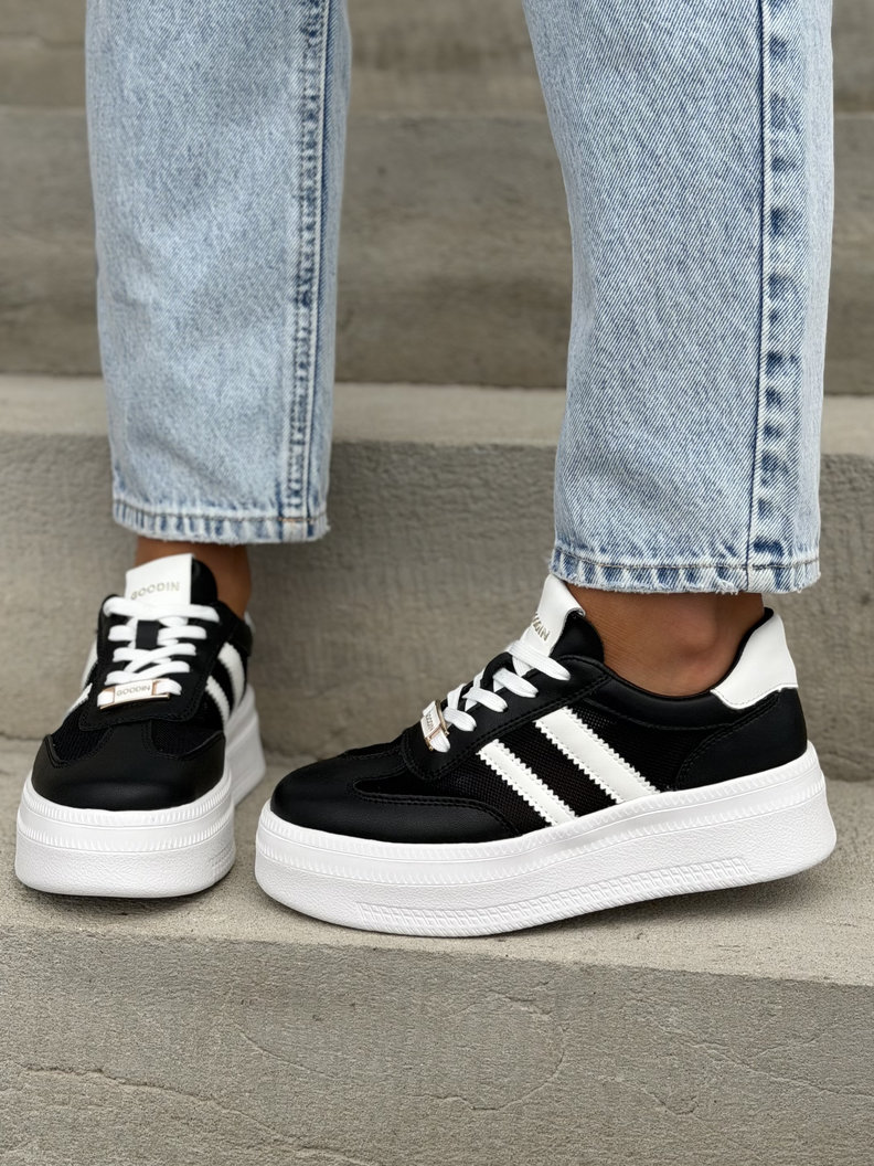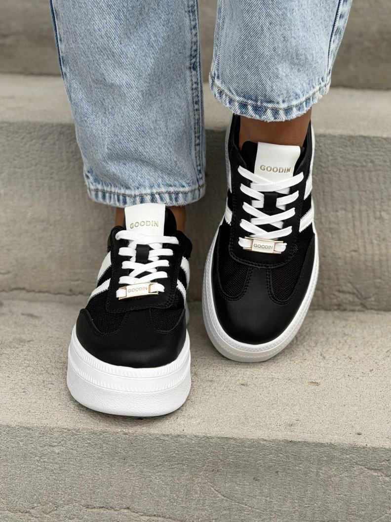 Modne trampki na lekko wyższej podeszwie, która wysmukla sylwetkę i dodaje kilku centymetrów. Boczne wstawki z siateczki nadają im lekkości i wpisują się w najmodniejsze trendy sezonu. Lekkie, wygodne i idealne na co dzień — pasują praktycznie do każdej stylizacji.
