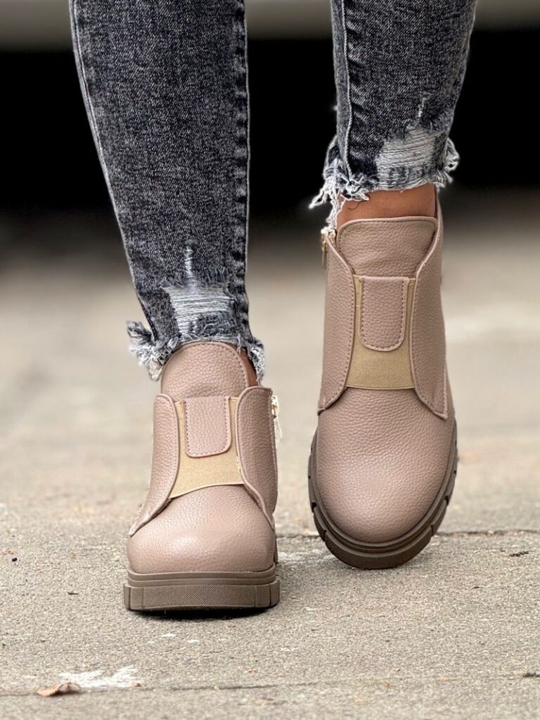 Mega modny krój cholewki z antypoślizgową podeszwą.