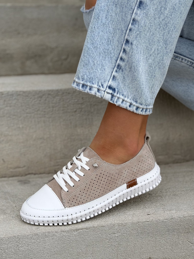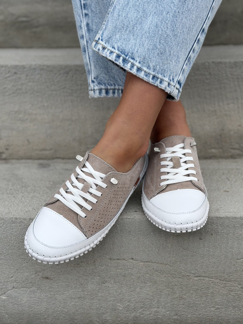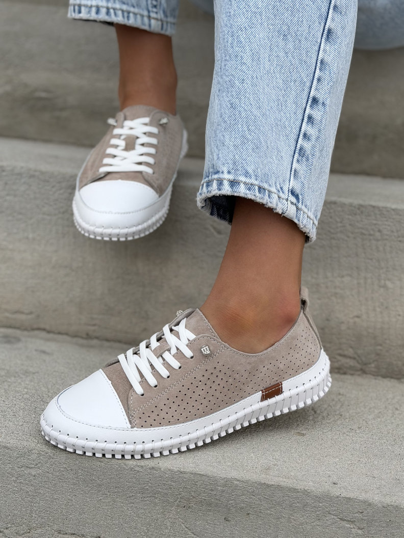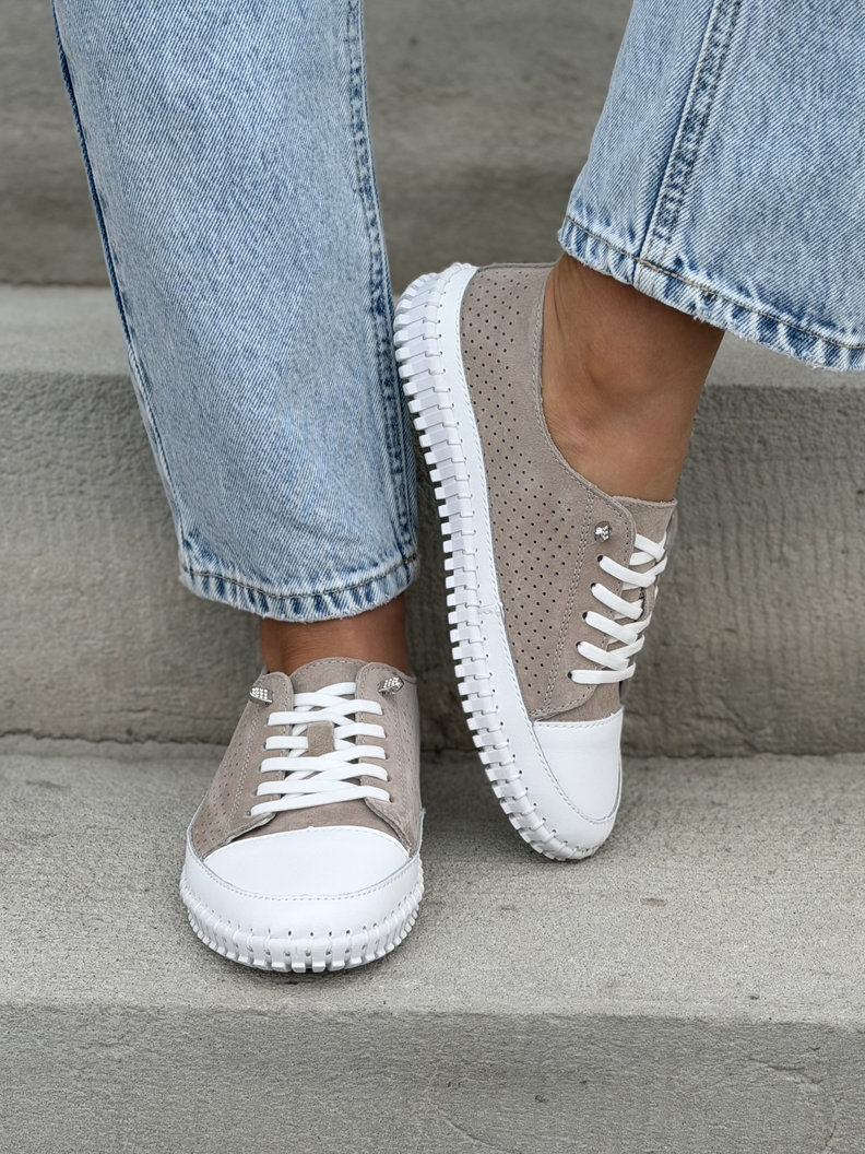 Subtelne, ale zauważalne. Miękkie i wygodne – stworzone na cały dzień. Oddychająca konstrukcja i antypoślizgowa podeszwa zapewniają lekkość noszenia. Idealne do lnianych kompletów, bieli i naturalnych stylizacji