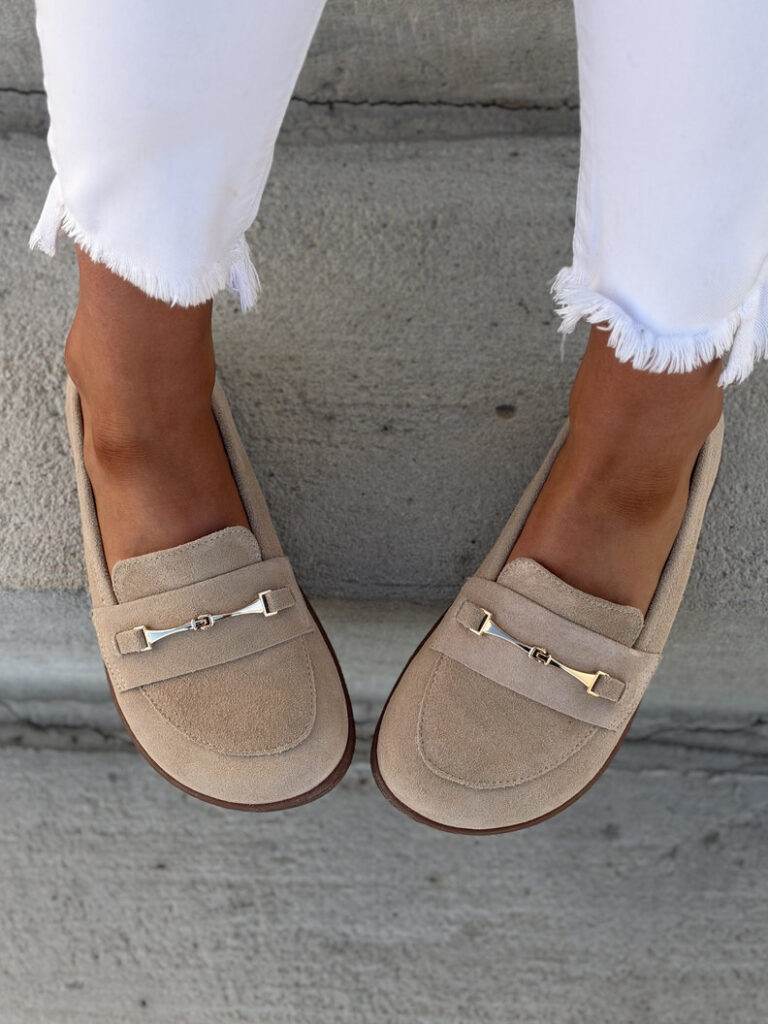 Złote klapki z naturalnej skóry, wykończone modną, słomianą fakturą. Z przodu subtelna, złota ozdoba dodaje elegancji. Całe wnętrze z miękkiej, naturalnej skóry zapewnia komfort na każdym kroku. Idealne na letnie dni – stylowe, wygodne i pełne klasy