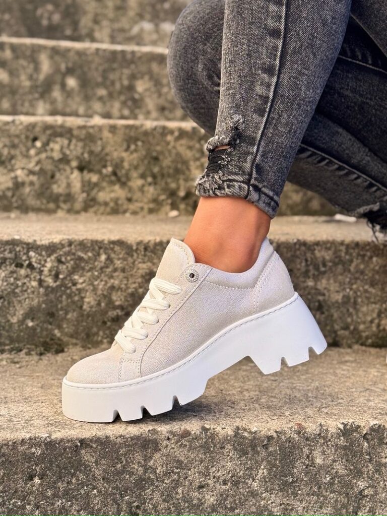 Modne trampki na wyższej podeszwie KAZADII TOLIARA SILVER skóra naturalna