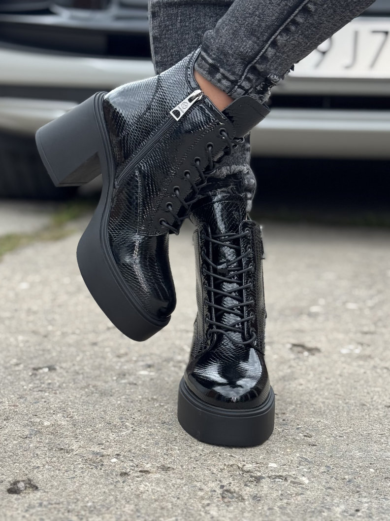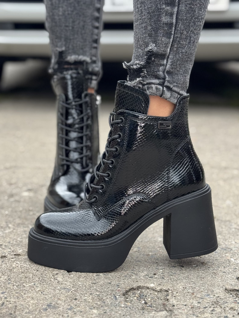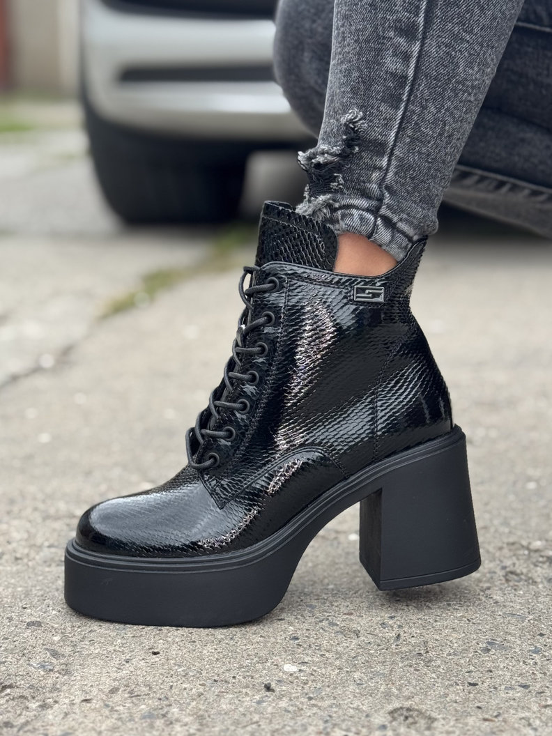 Stylowe botki damskie na słupku, wykonane ze skóry naturalnej, ocieplane wewnątrz kocem obuwniczym. Stabilny 8 cm słupek gwarantuje wygodę i pewny krok. Idealne do sukienek, spódnic i eleganckich spodni – must-have na jesień i zimę.