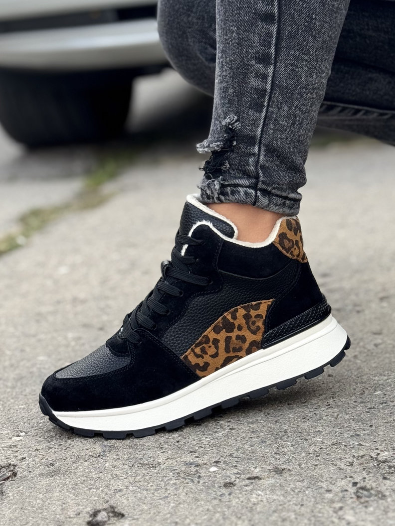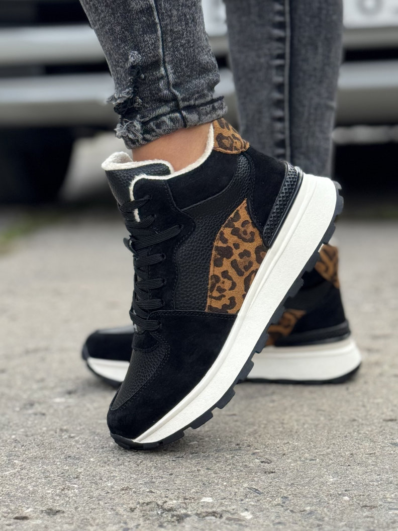 Podeszwa 4 cm subtelnie podwyższa sylwetkę. Wnętrze z delikatnym ociepleniem miękkim misiem utrzymuje ciepło, a dzięki antypoślizgowej podeszwie buty dobrze trzymają się podłoża.