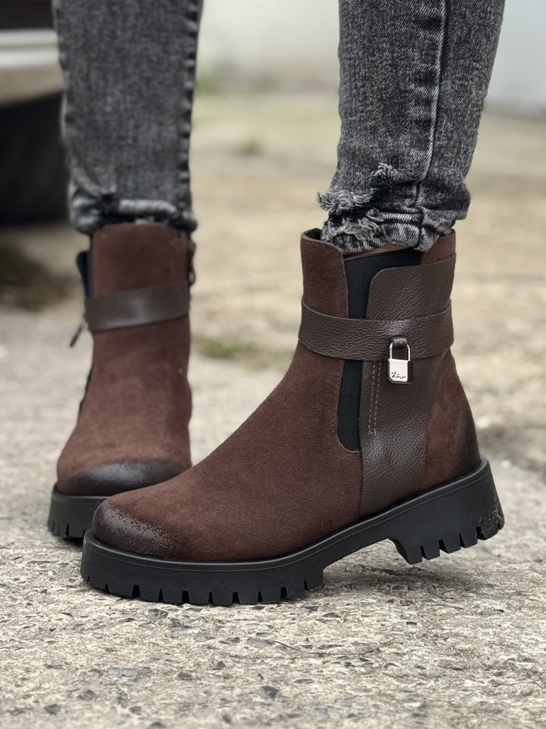 Botki wykonane przez polską markę Kazadii, z miękkiej, naturalnej skóry, delikatnie ocieplane, zapewniają komfort i ciepło przez cały dzień. Antypoślizgowa podeszwa i praktyczny suwak ułatwiają zakładanie. Subtelne zdobienia przy kostce dodają charakteru. Idealne do pracy, na spotkania i na co dzień – must have na chłodniejsze dni.