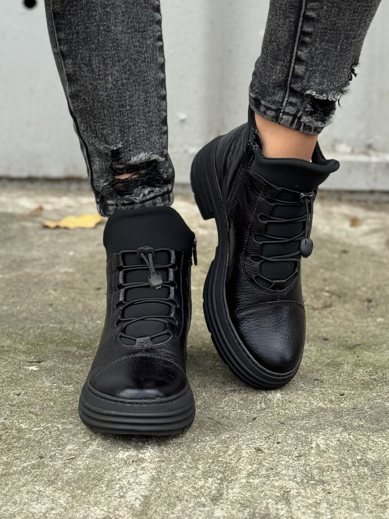 KAZADII NUUK to lekkie, botki stworzone dla kobiet, które chcą wyglądać stylowo i czuć pełen komfort nawet w chłodne dni. Wnętrze z miękkiej naturalnej wełny merino otula stopę ciepłem, a jednocześnie pozwala jej oddychać – koniec z marznięciem i przepoconymi butami. Cholewka z naturalnej skóry premium dopasowuje się do stopy i wygląda świetnie w każdej stylizacji: od jeansów, po legginsy i płaszcze. Podeszwa jest ultralekka, więc te botki nosi się dosłownie jak kapcie – zero ciężaru, zero zmęczenia.