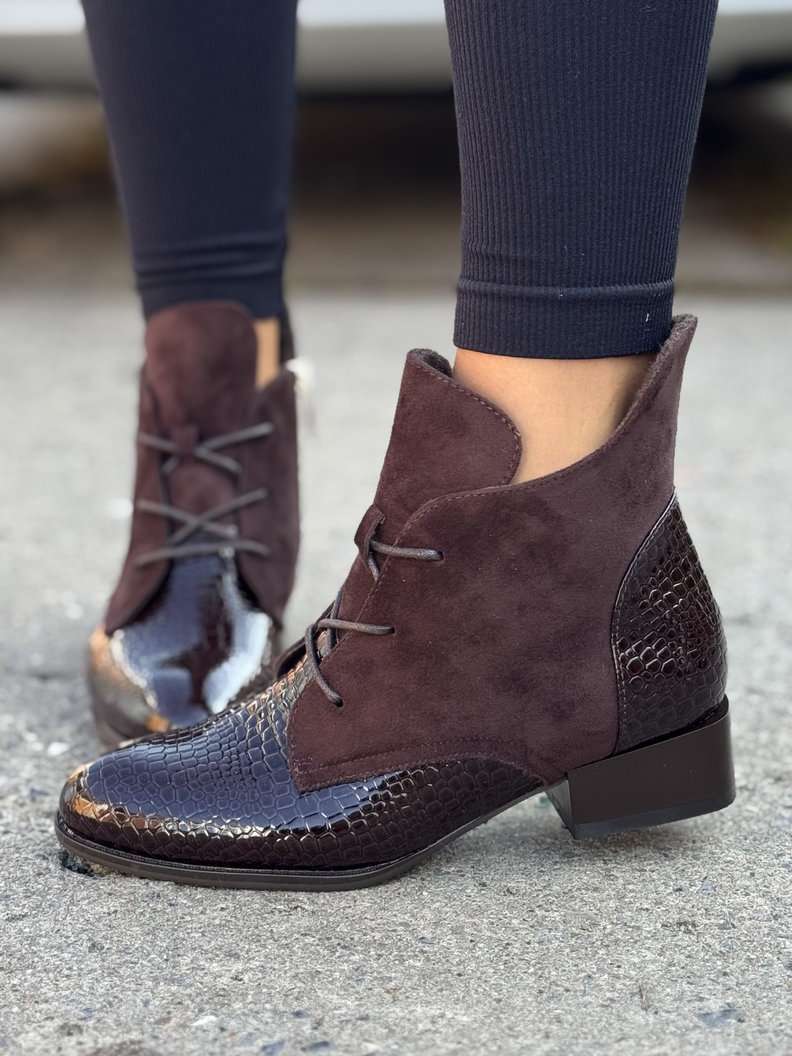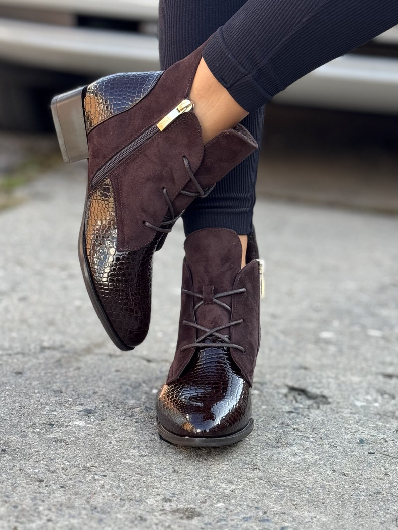 Ocieplane botki STREET LUXE CHOCO skóra naturalna