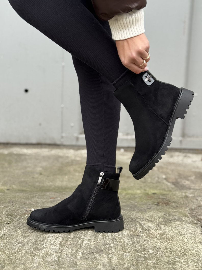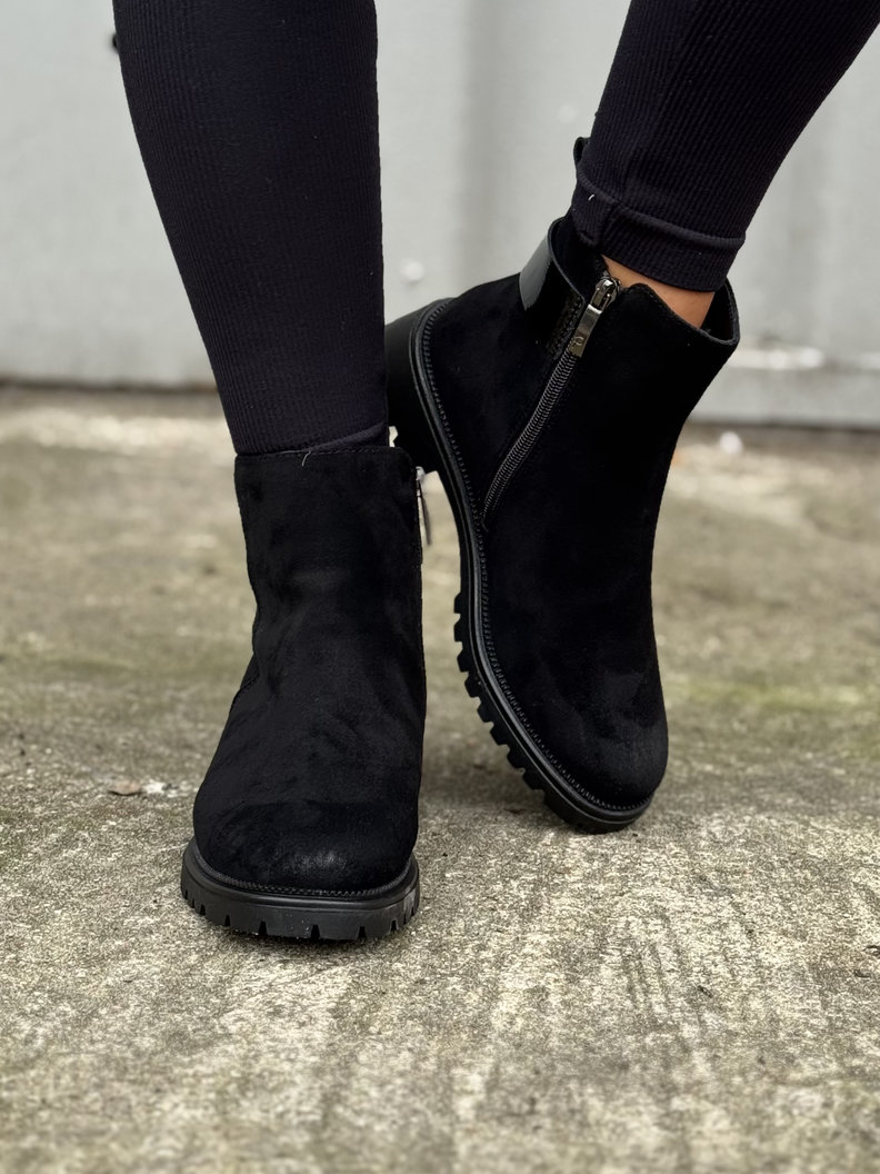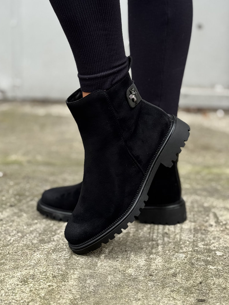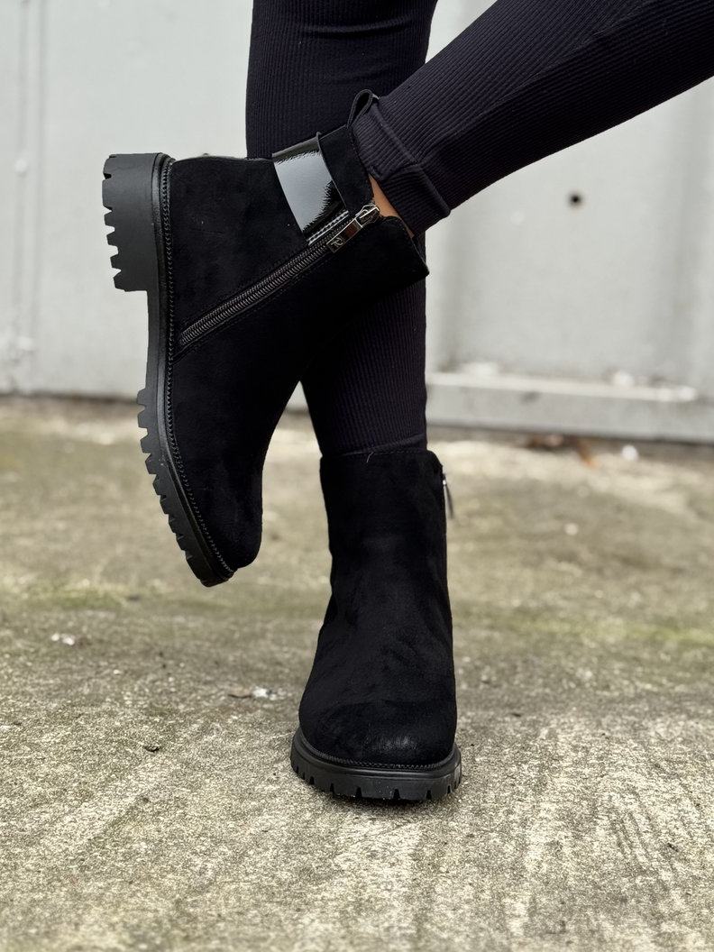 Wykonane z eko zamszu – wyglądają elegancko, a jednocześnie są bardzo wygodne. W środku ciepły koc obuwniczy, a podeszwa antypoślizgowa trzyma się podłoża, dzięki czemu czujesz się pewnie nawet na mokrym czy śliskim chodniku. To taki model, który pasuje do wszystkiego i który zakładasz raz… i już nie chcesz innych. Idealne na co dzień i do stylizacji „na szybko”, gdy chcesz wyglądać ładnie, ale wciąż czuć komfort
