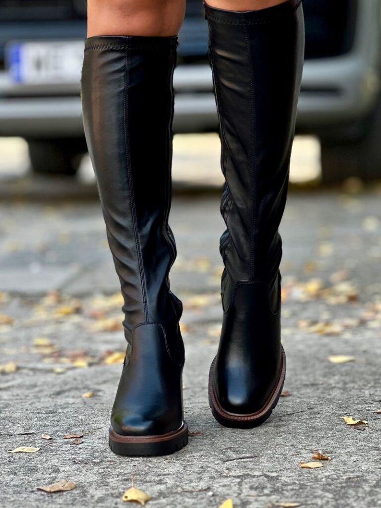 Piękne i zgrabne botki na obcasie przed kolano ALBERINIO black