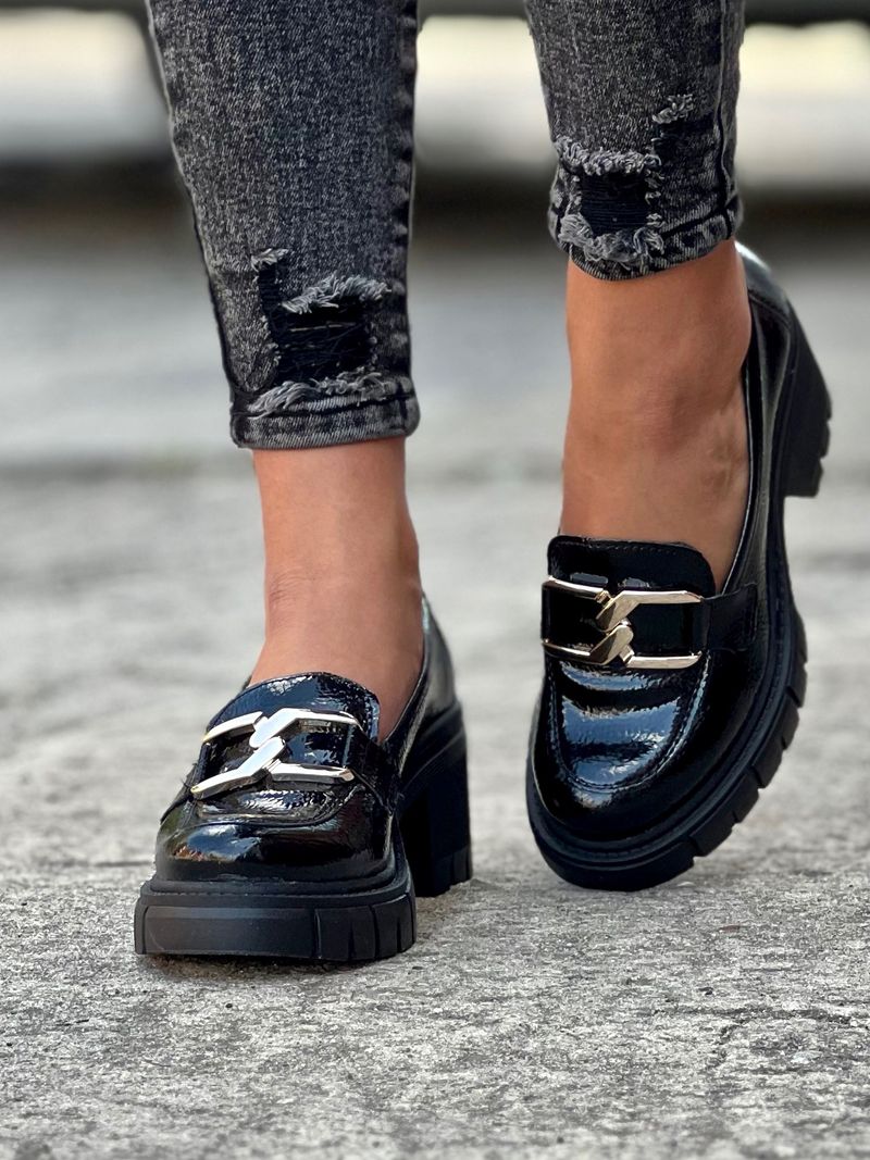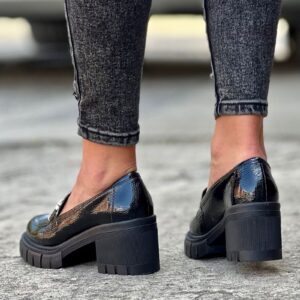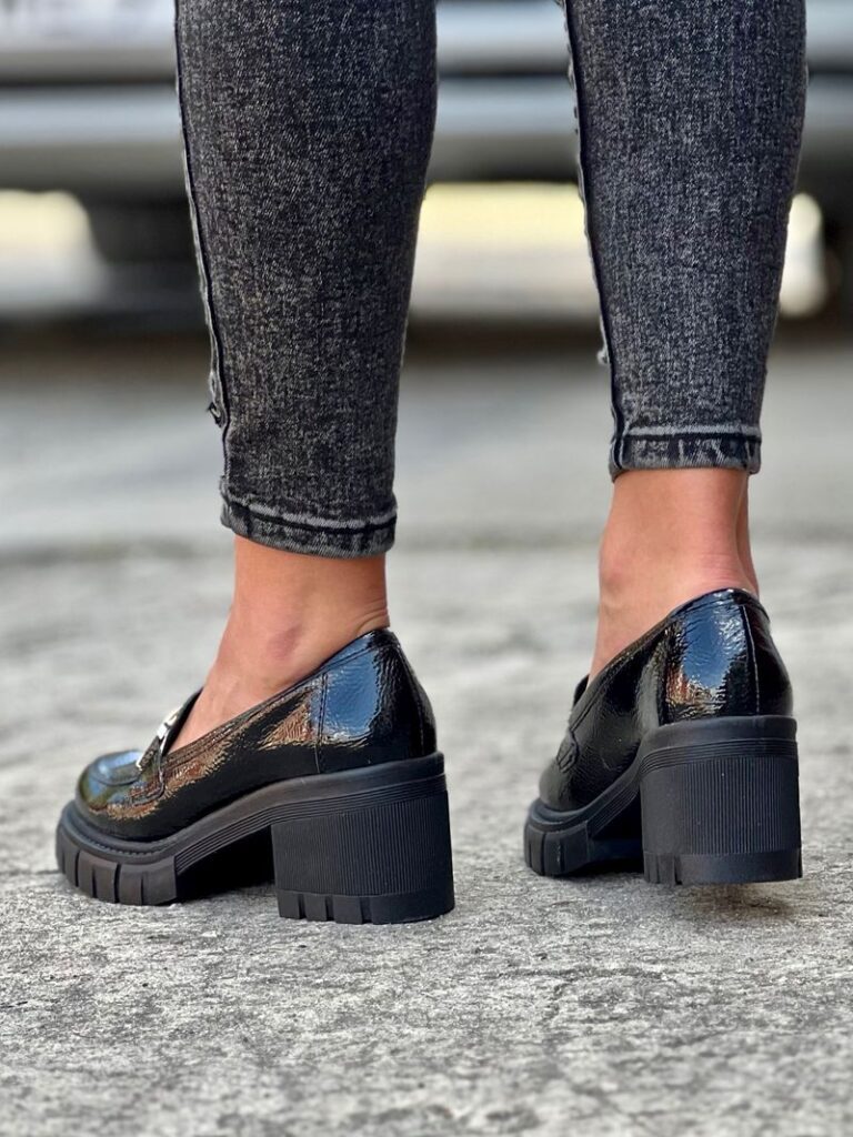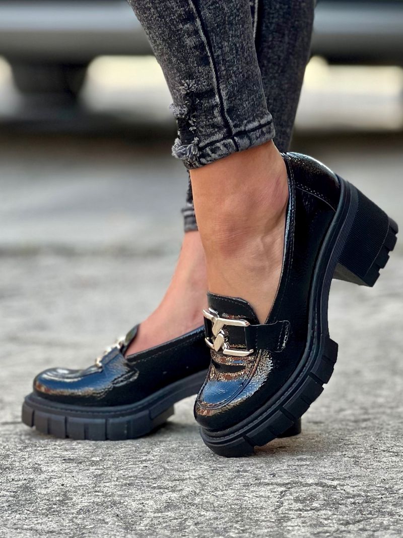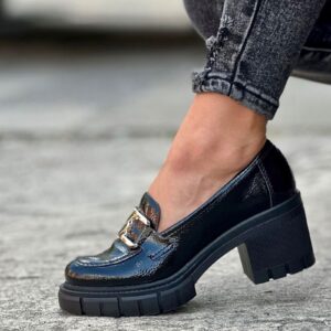 Lekkie półbuty na obcasie KAZADII DELANOZ3 kolor czarny lakier wkładka skóra naturalna