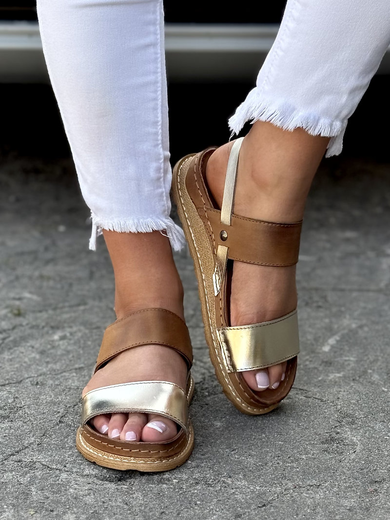 Sandałki KAZADII CALA ZŁOTO BRĄZOWE skóra naturalna