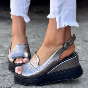 Sandały na koturnie SORRENTINA SILVER skóra naturalna