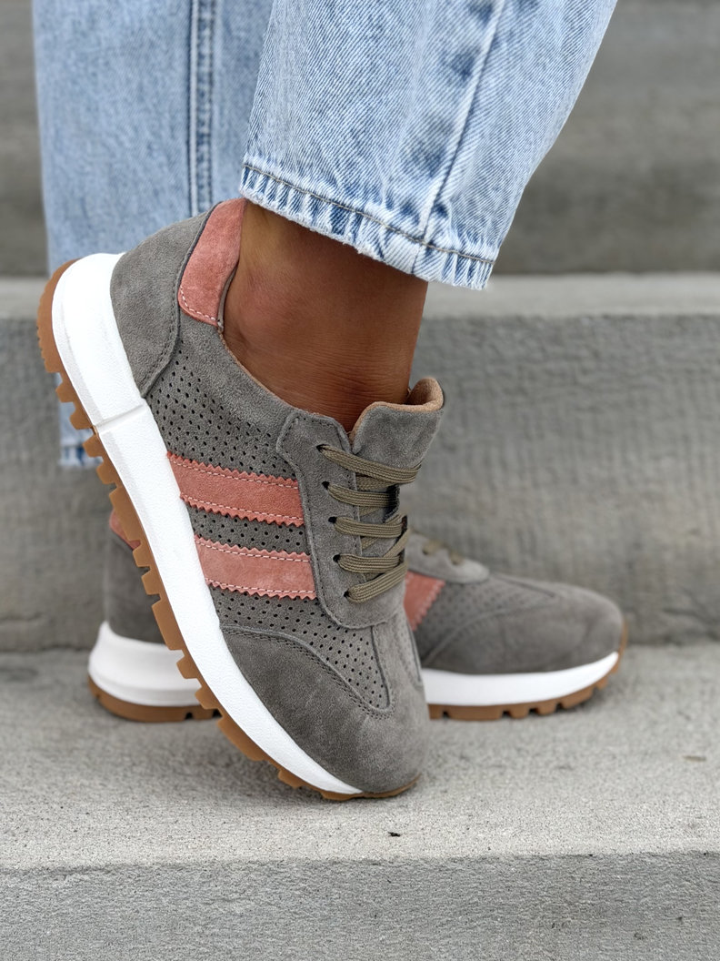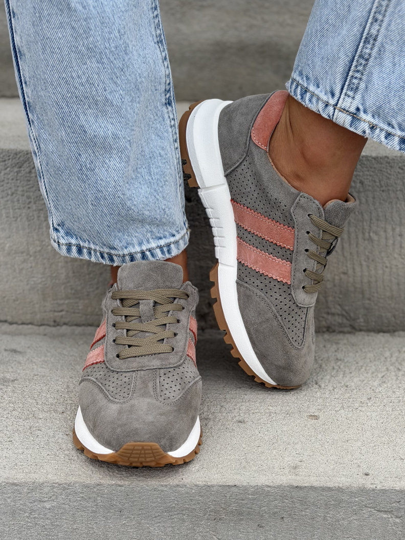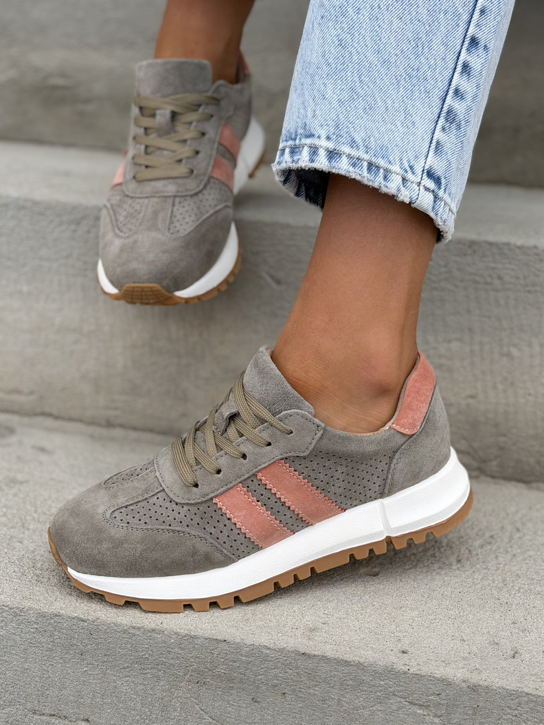 Stylowe sneakersy damskie wykonane z naturalnej skóry zamszowej to idealny wybór na lato i codzienne stylizacje. Skórzana wkładka oraz oddychające wnętrze zapewniają komfort noszenia przez cały dzień. Lekka, antypoślizgowa podeszwa gwarantuje wygodę i stabilność. Modne sneakersy, które świetnie pasują do jeansów, sukienek i letnich outfitów.