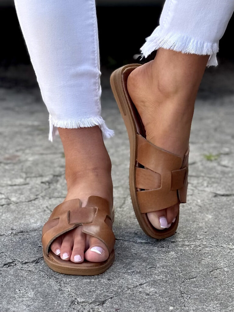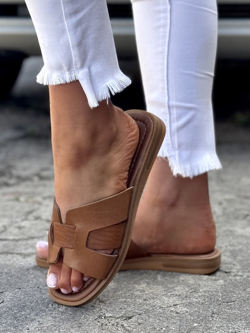 Stylowe klapki ORMES CAMEL skóra naturalna