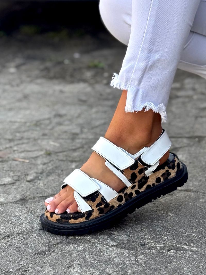 Biało panterkowe sandałki na mega lekkiej podeszwie to elegancka propozycja na każdą okazję – od garden party po romantyczne spacery. Wykonane w całości z naturalnej skóry, zachwycają komfortem i kobiecym designem. Idealne na każdy typ stopy (można regulować zapinanie na rzep w szerokości i obwodzie).