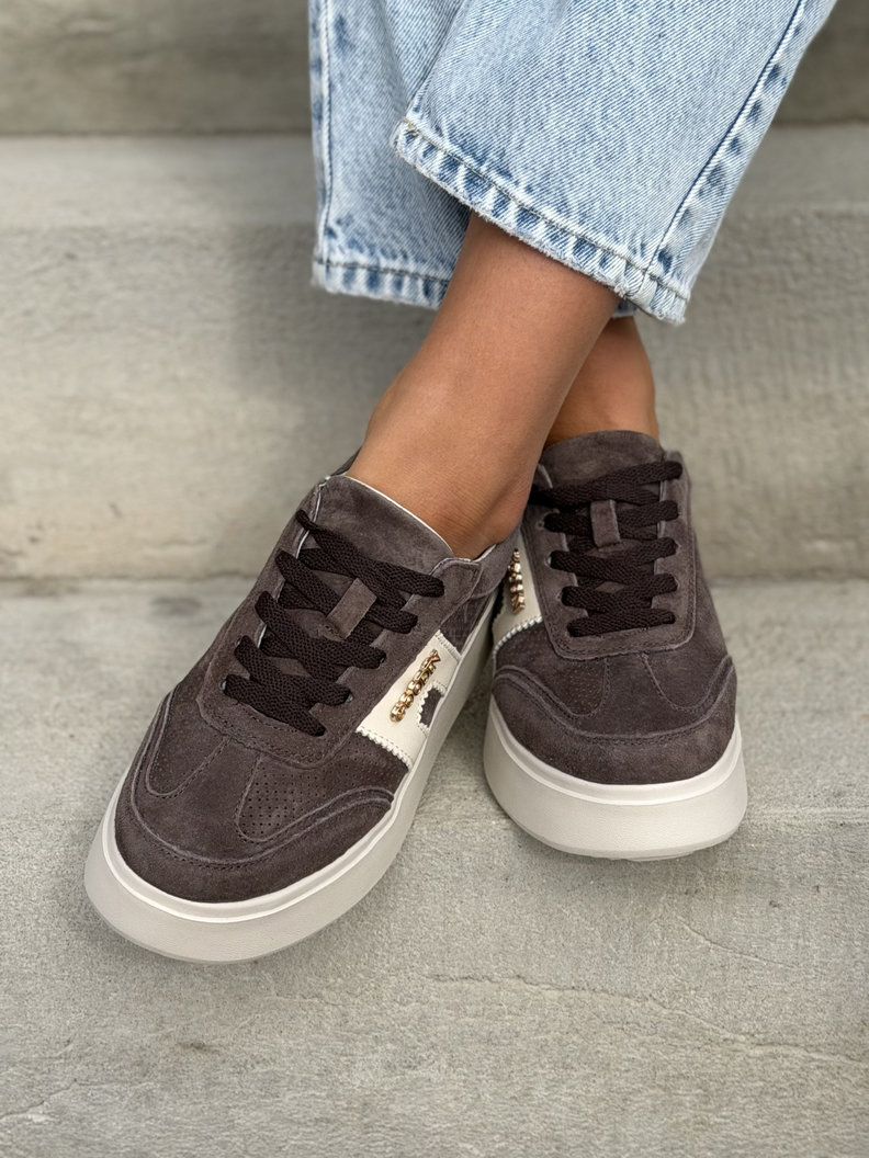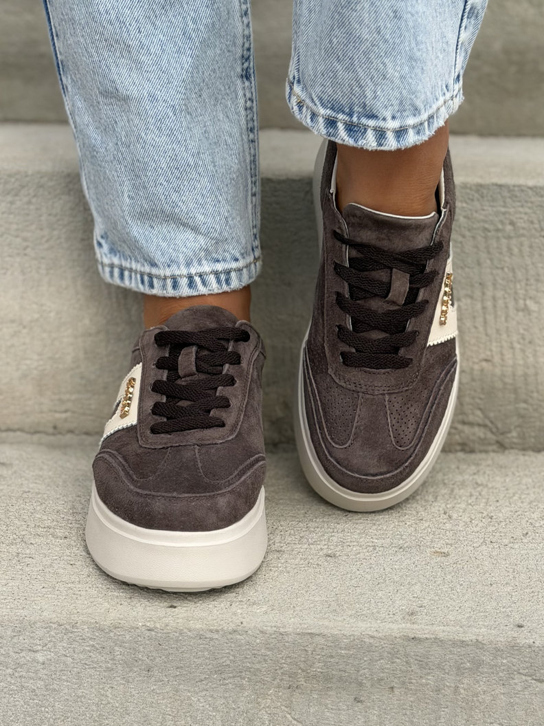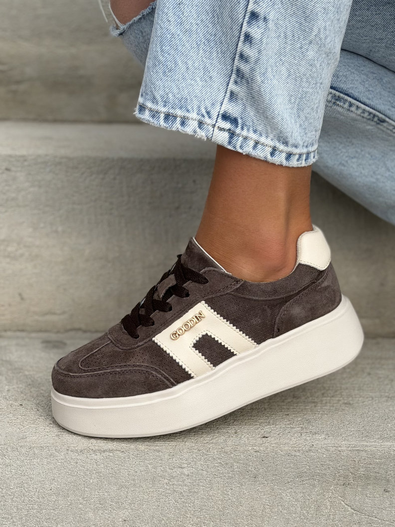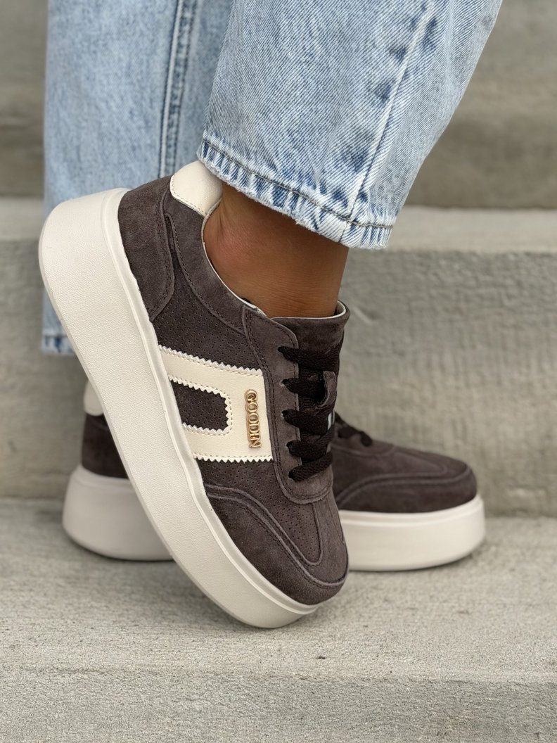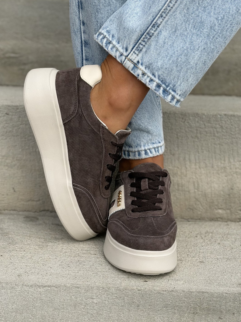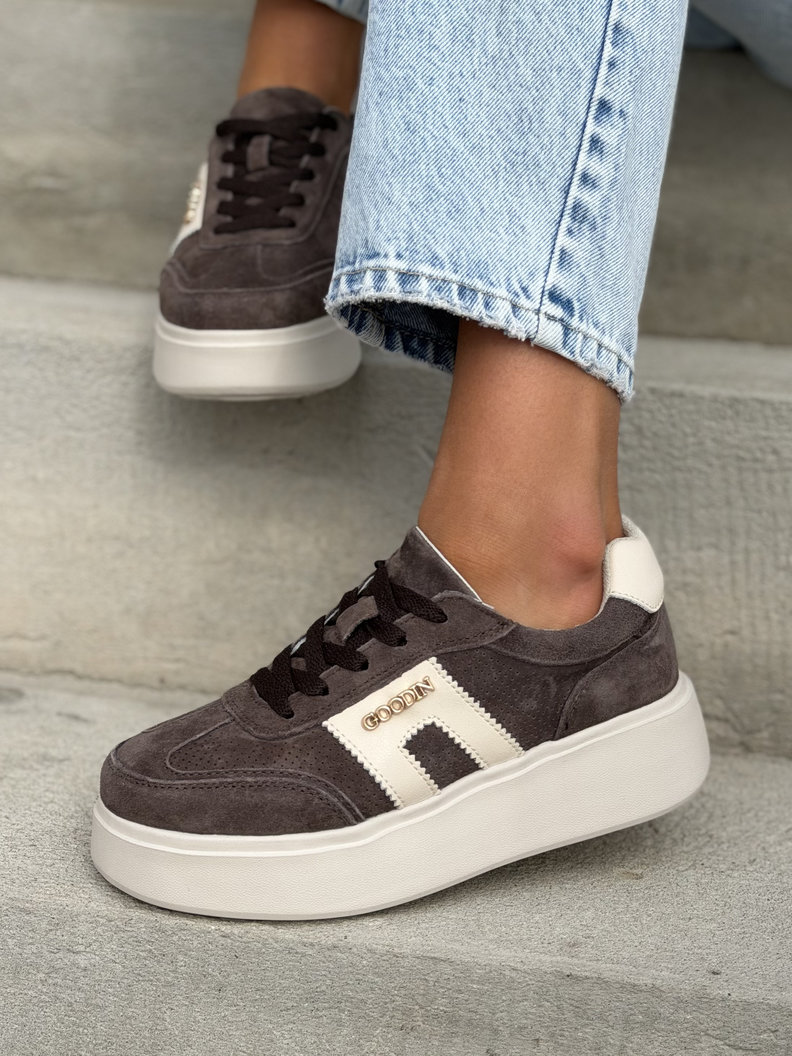 Ultralekkie trampki damskie z naturalnej skóry i przewiewnego materiału. Skórzane wnętrze i wkładka zapewniają maksymalny komfort przez cały dzień. Podeszwa 4 cm subtelnie wysmukla sylwetkę i dodaje modnego, nowoczesnego charakteru. To jeden z najbardziej pożądanych modeli tego sezonu – wygodne, premium i absolutnie topowe.