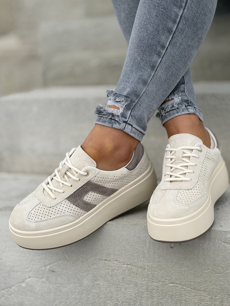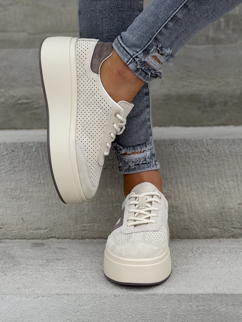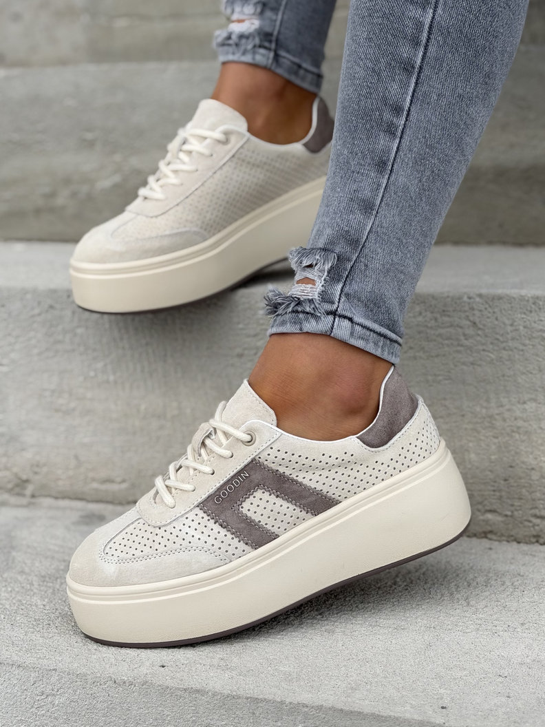 Lekkie jak piórko, stylowe i wygodne trampki ze skóry naturalnej, ze skórzaną, oddychającą wkładką i dzianiną wewnątrz, która daje komfort na cały dzień. Podeszwa EVA, bardzo lekka, 4,5 cm, wyszczupla nogi, jest miękka i antypoślizgowa. Idealne do miasta, na spacer i szybkie wyjście