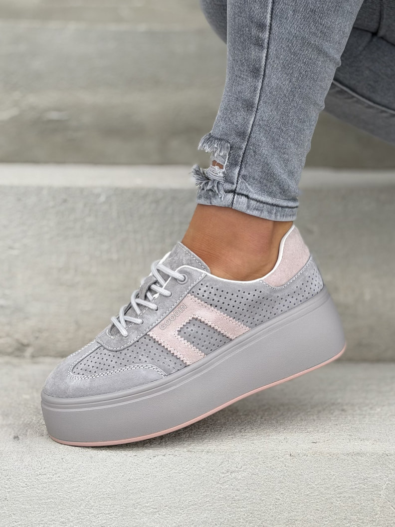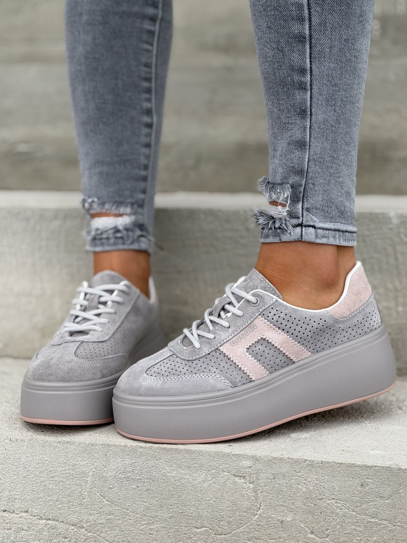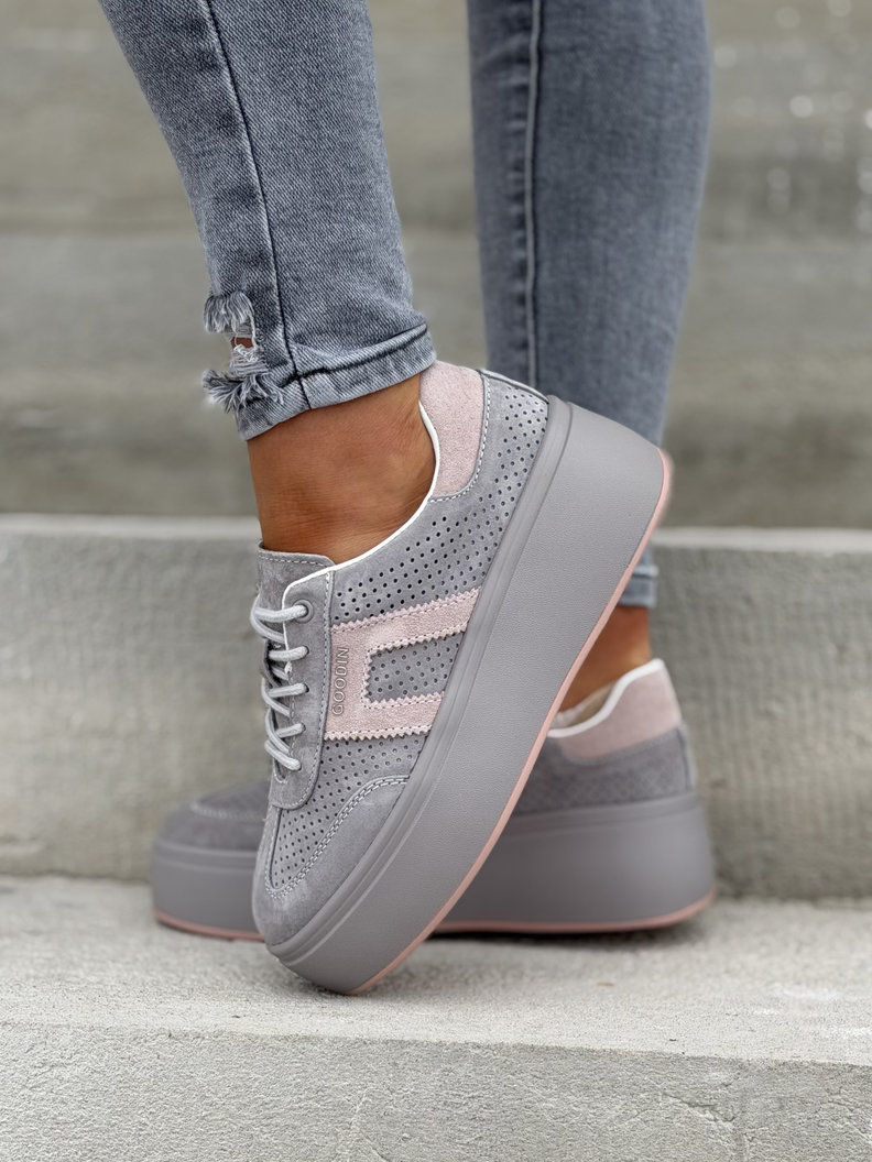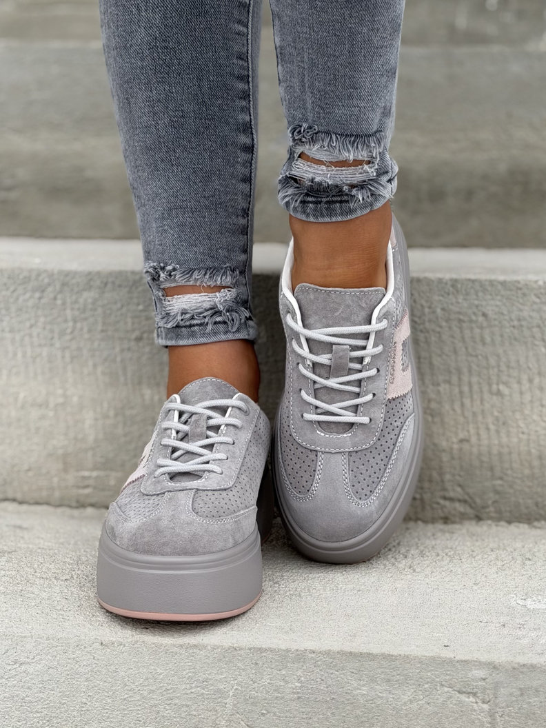 Lekkie jak piórko, stylowe i wygodne trampki ze skóry naturalnej, ze skórzaną, oddychającą wkładką i dzianiną wewnątrz, która daje komfort na cały dzień. Podeszwa EVA, bardzo lekka, 4,5 cm, wyszczupla nogi, jest miękka i antypoślizgowa. Idealne do miasta, na spacer i szybkie wyjście