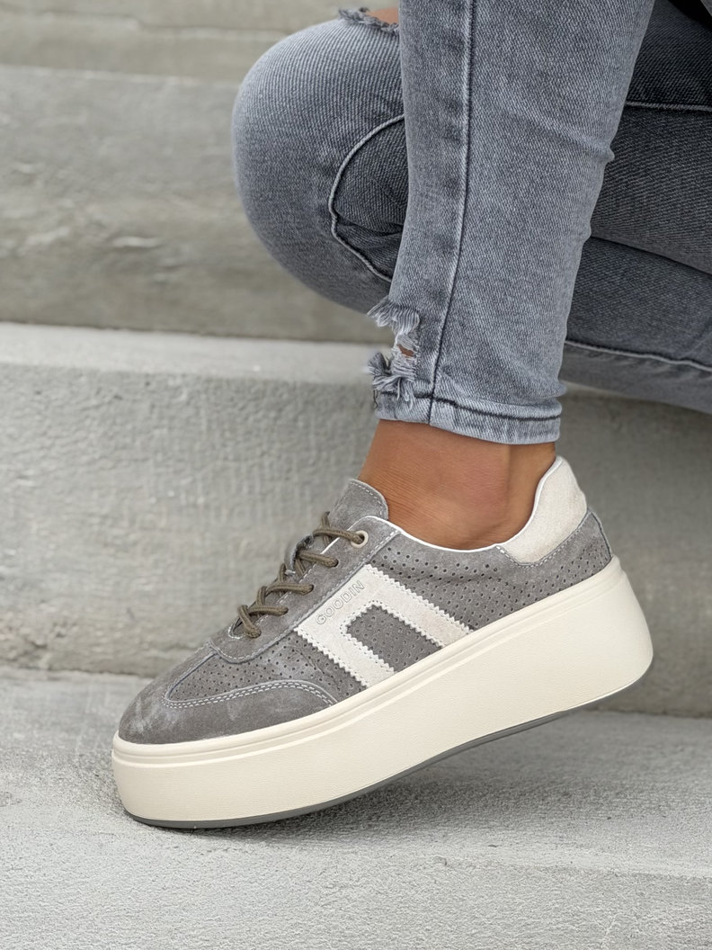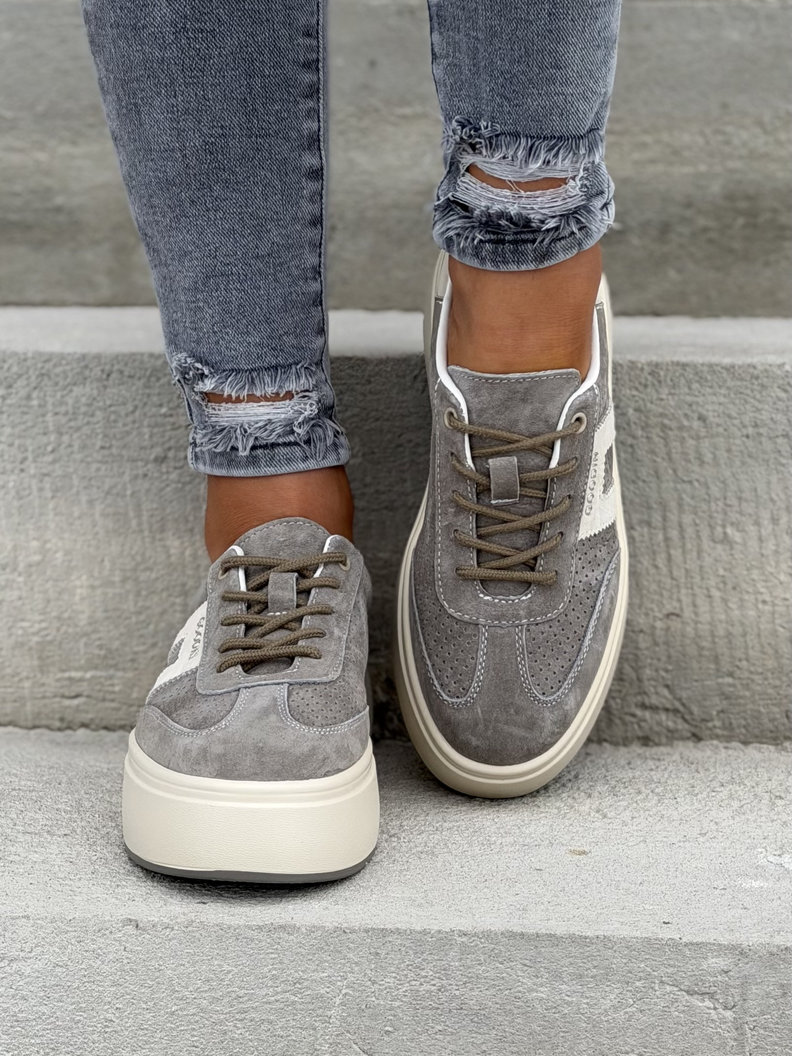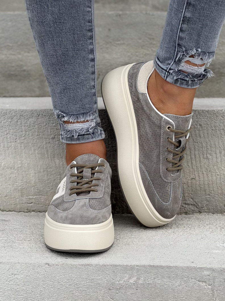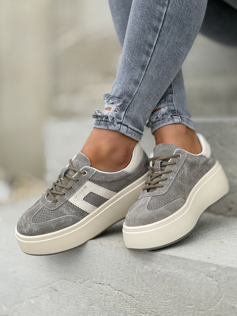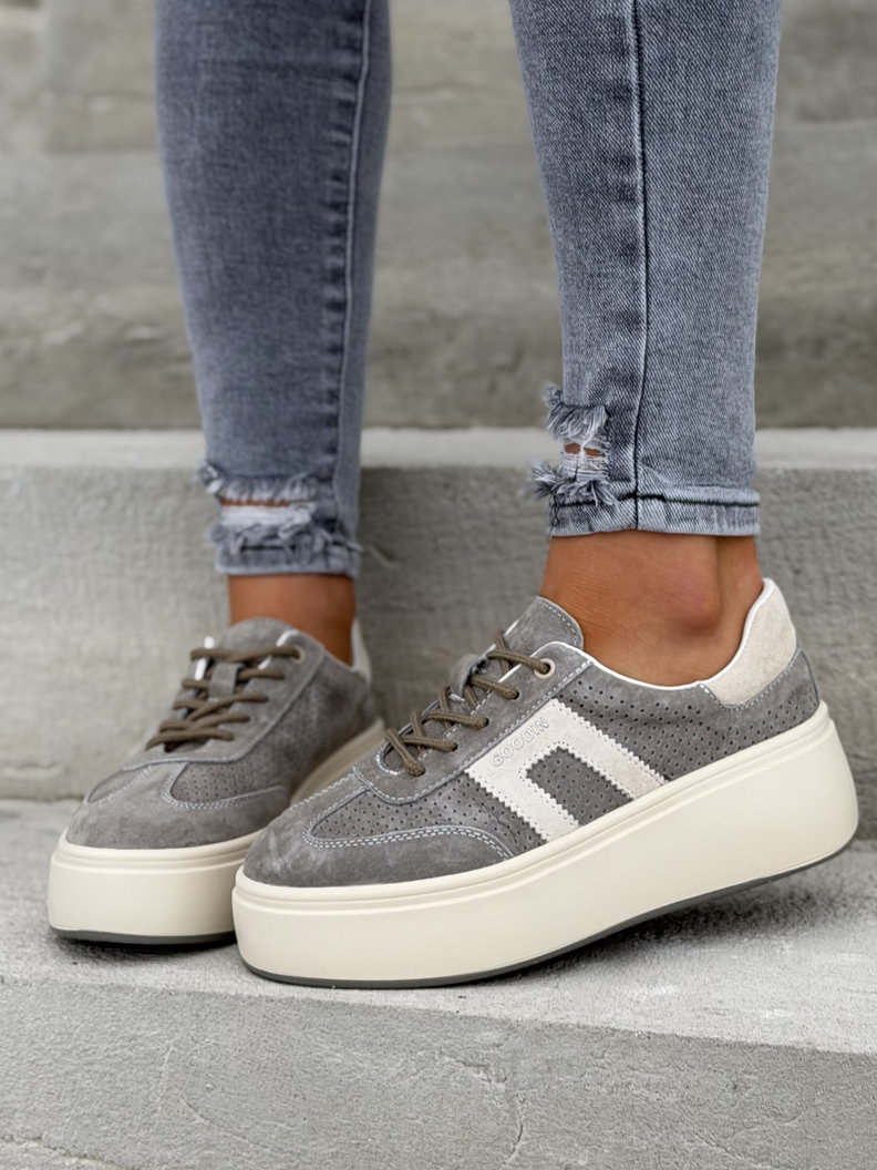Lekkie jak piórko, stylowe i wygodne trampki ze skóry naturalnej, ze skórzaną, oddychającą wkładką i dzianiną wewnątrz, która daje komfort na cały dzień. Podeszwa EVA, bardzo lekka, 4,5 cm, wyszczupla nogi, jest miękka i antypoślizgowa. Idealne do miasta, na spacer i szybkie wyjście